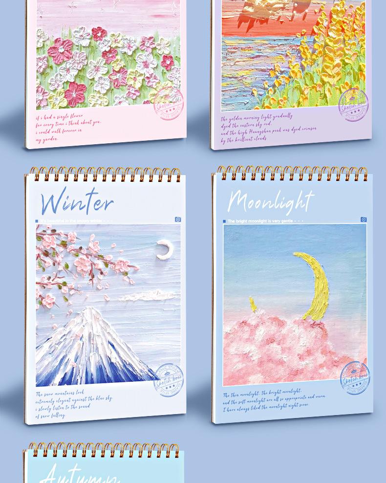 Cuaderno de bocetos engrosado A4 de estilo de pintura al óleo de alto aspecto, papelería para estudiantes, libro de pintura en espiral, libro de pintura, impresión de logotipos