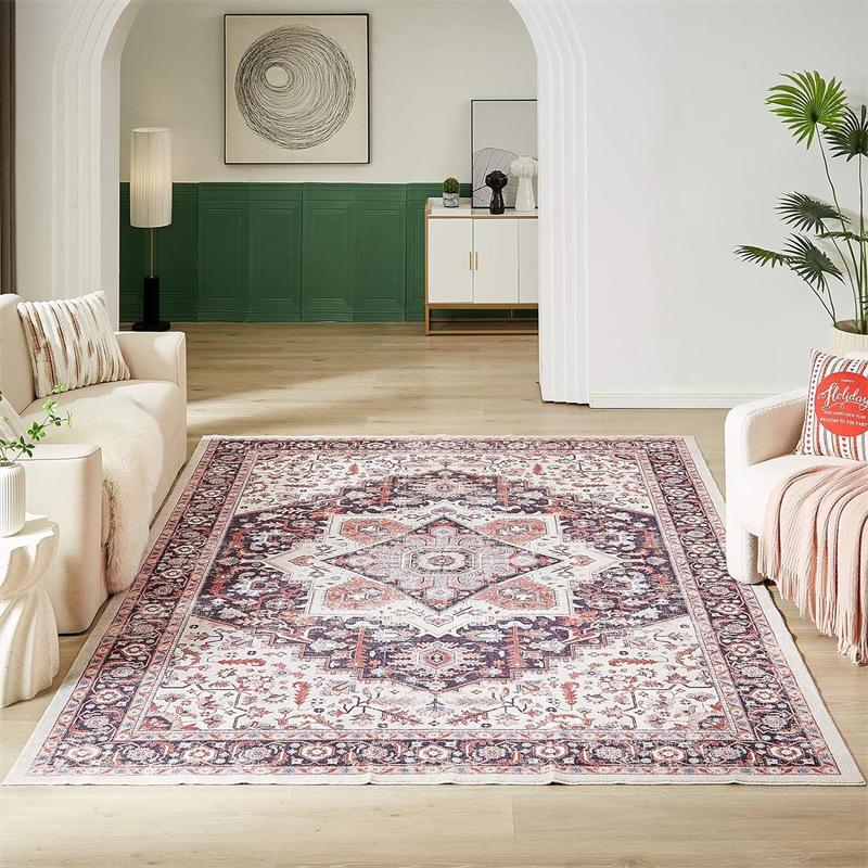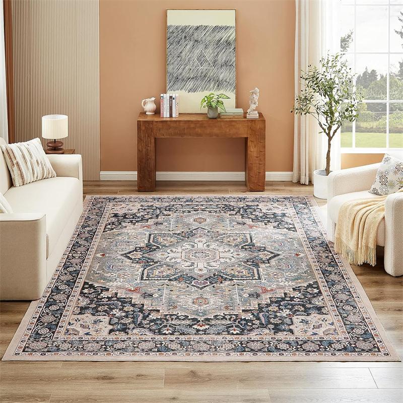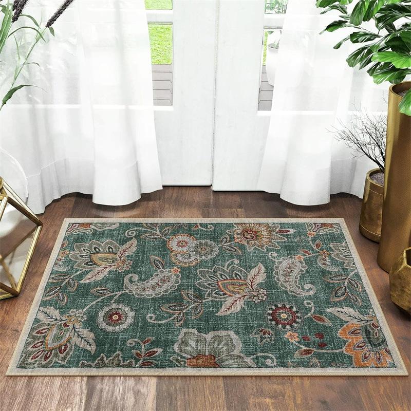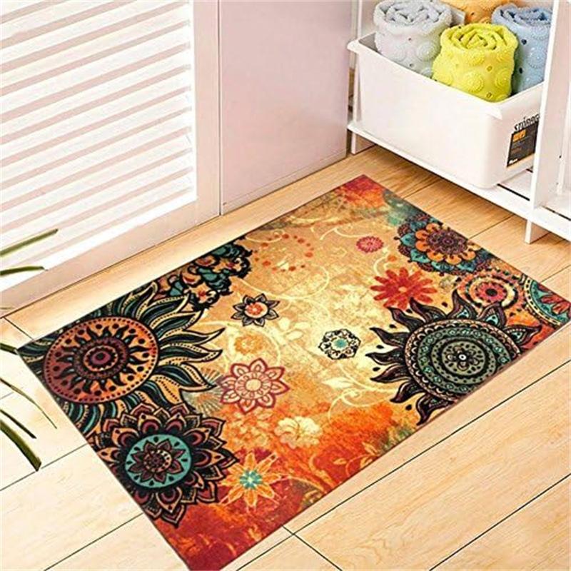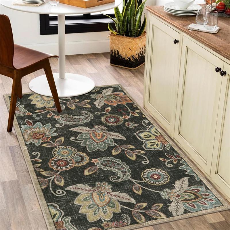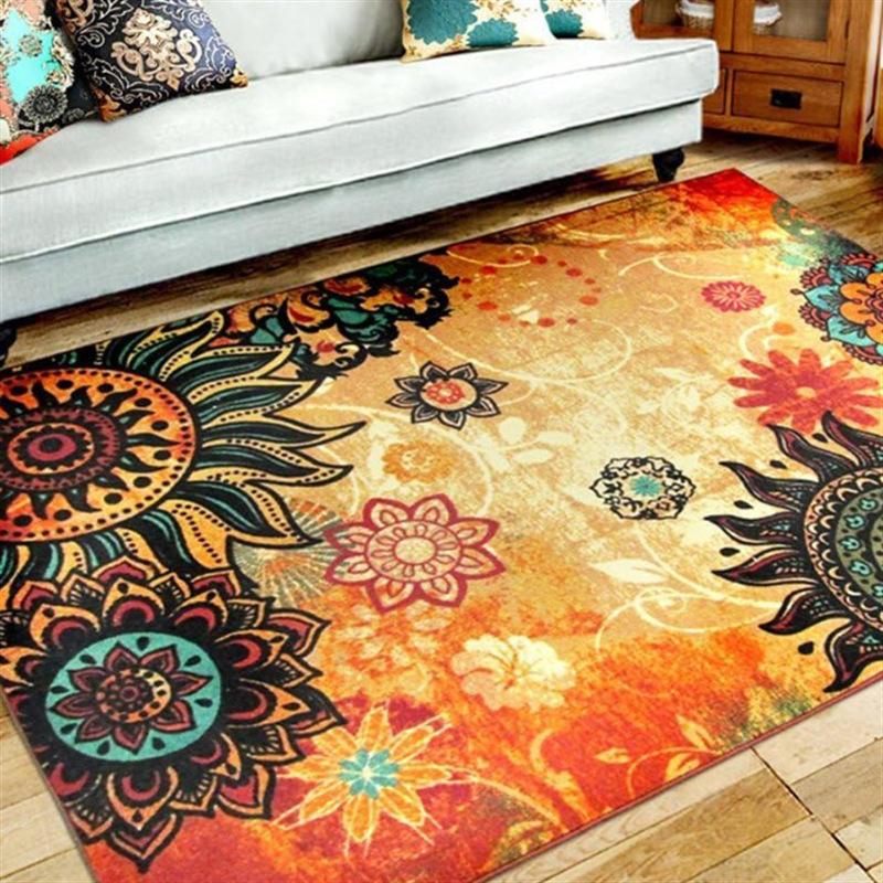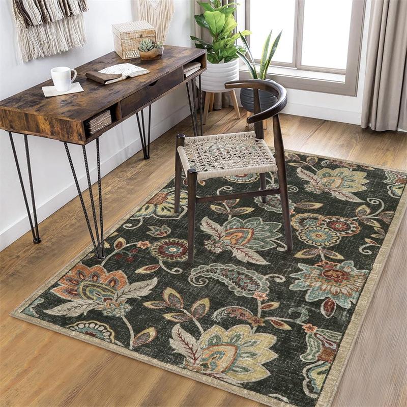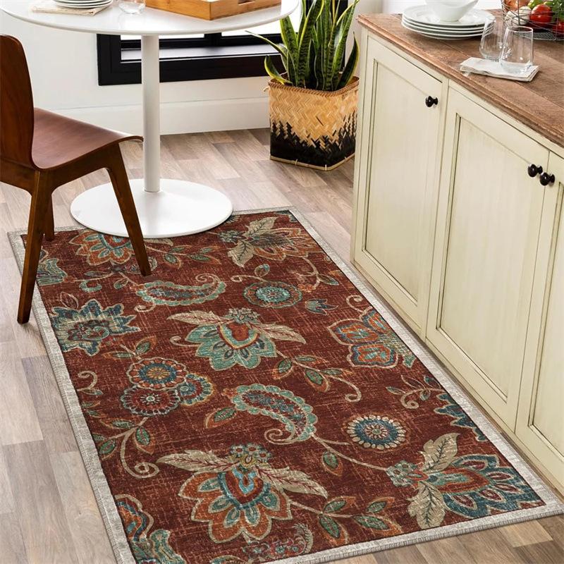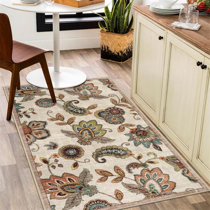 Alfombra de cachemira estilo bohemio con diseño de flores americanas retro transfronterizas para sala de estar, sofá, dormitorio, resistente a la suciedad, con borde antideslizante