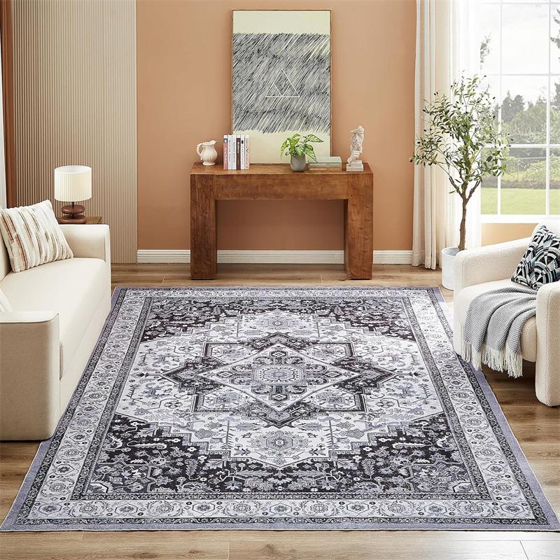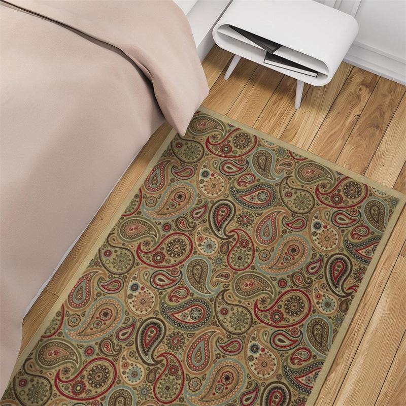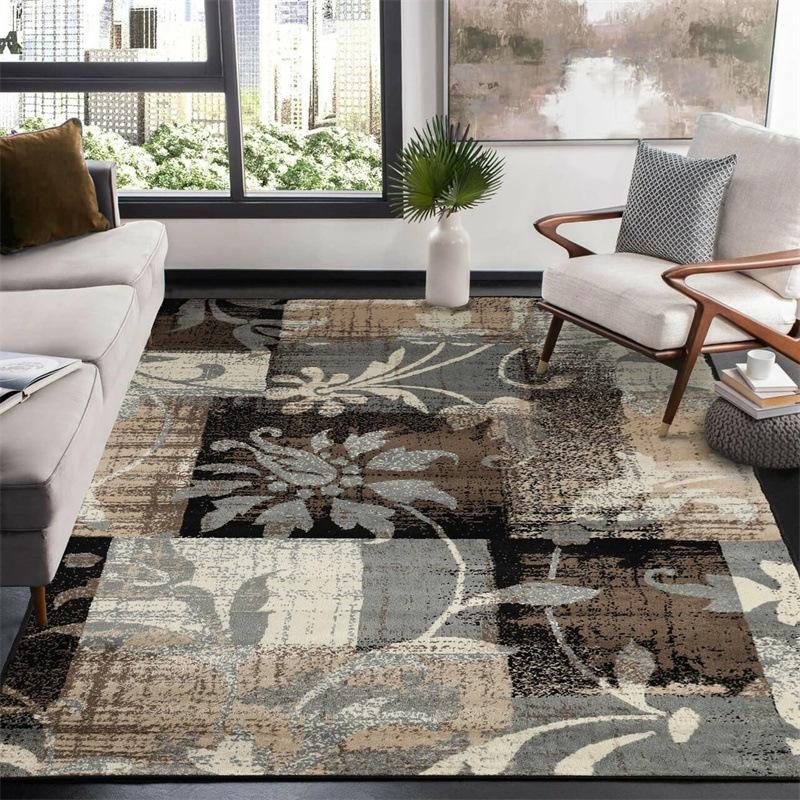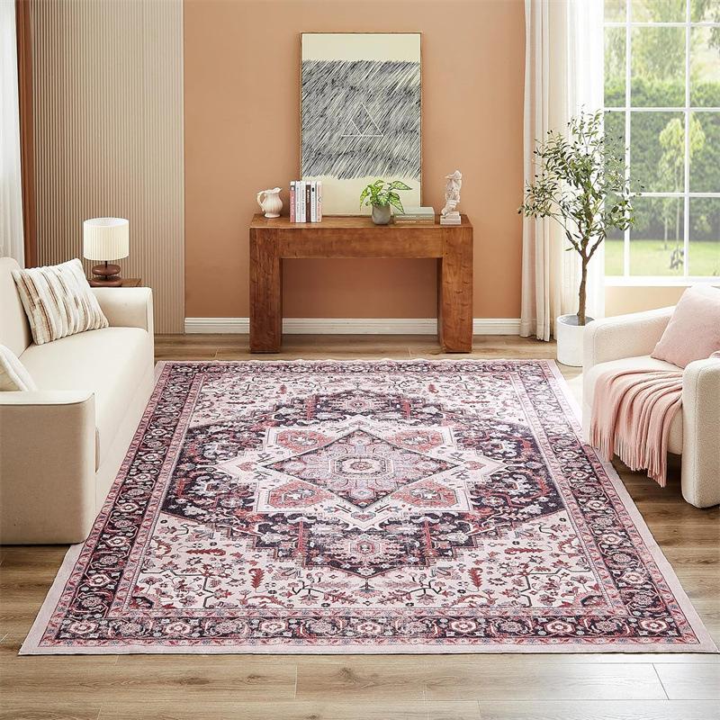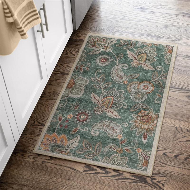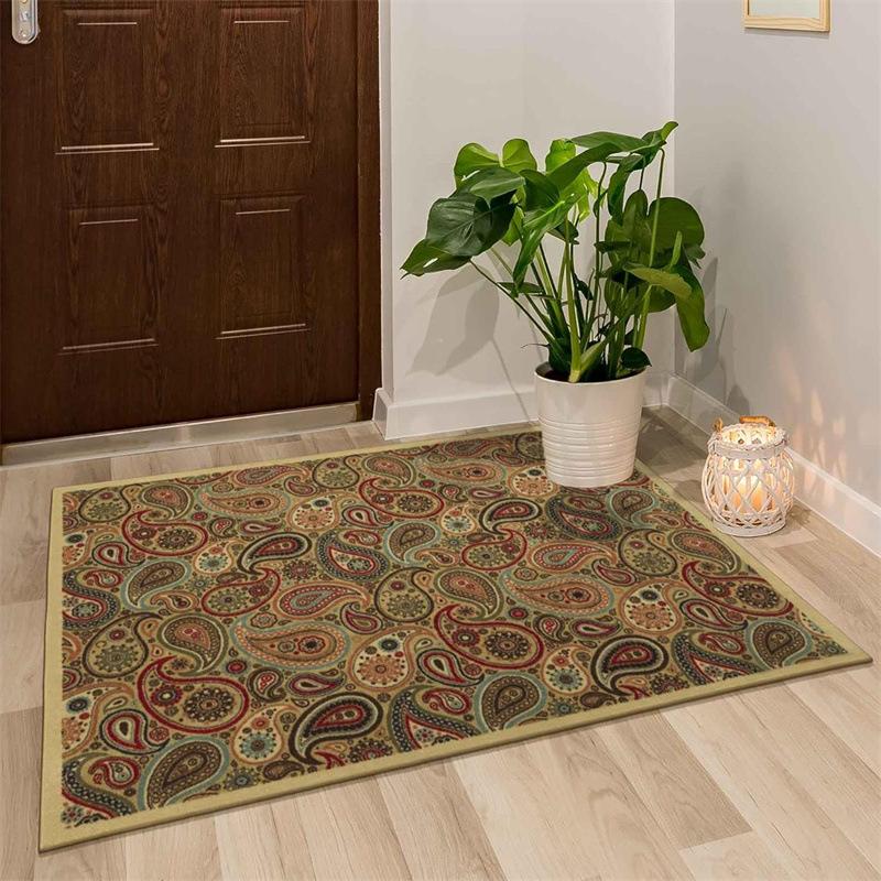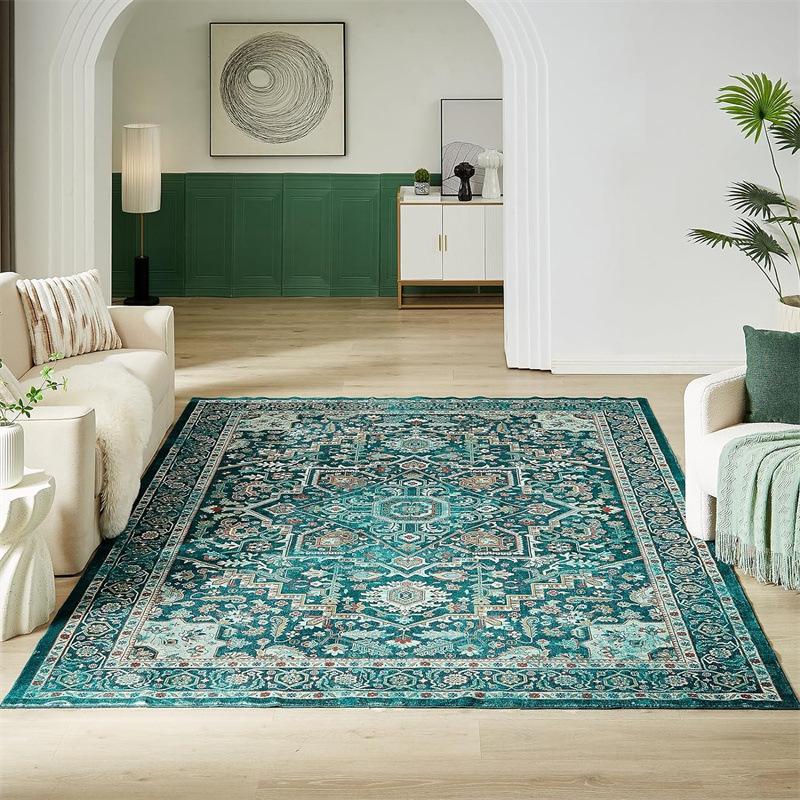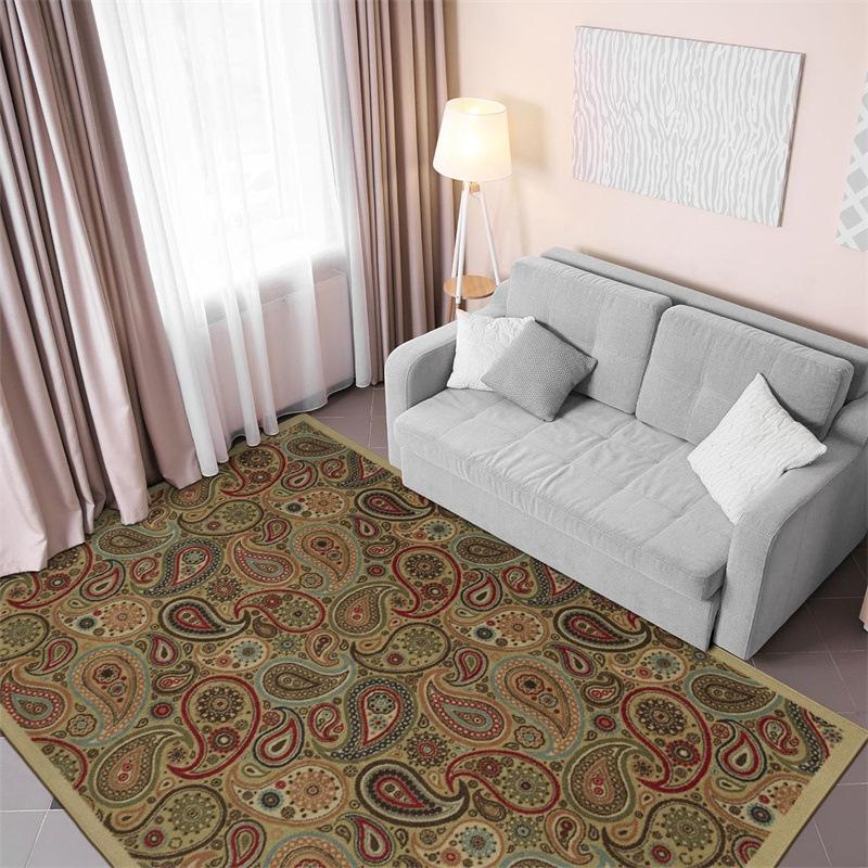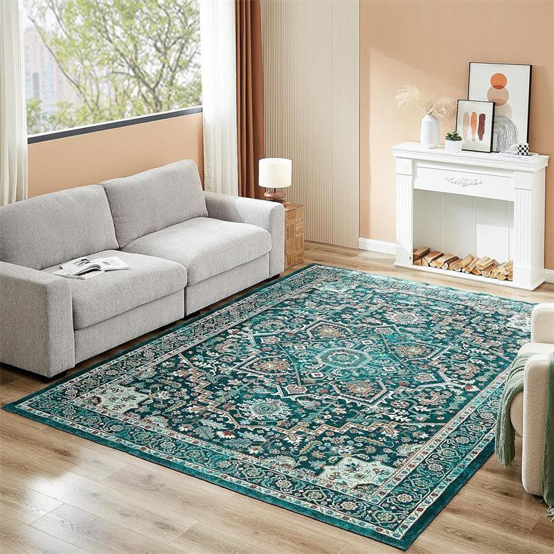 Alfombra de cachemira estilo bohemio con diseño de flores americanas retro transfronterizas para sala de estar, sofá, dormitorio, resistente a la suciedad, con borde antideslizante