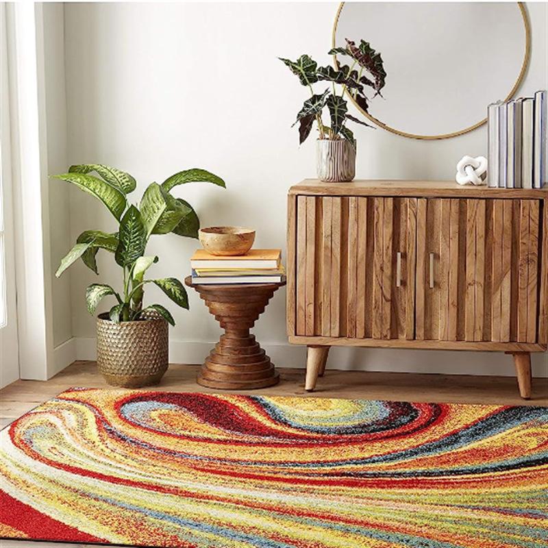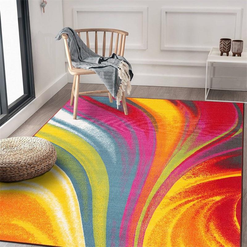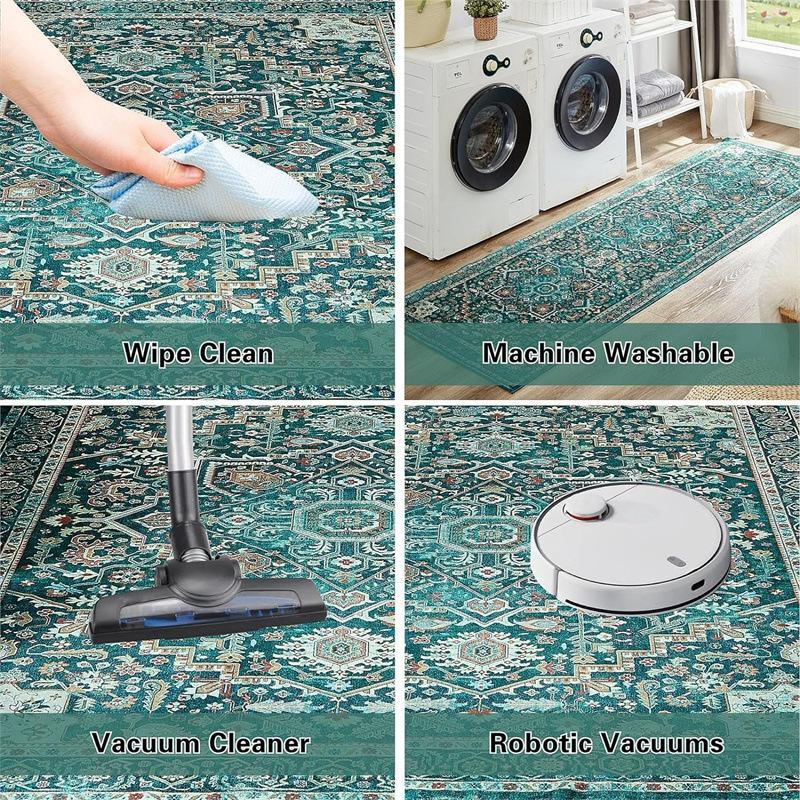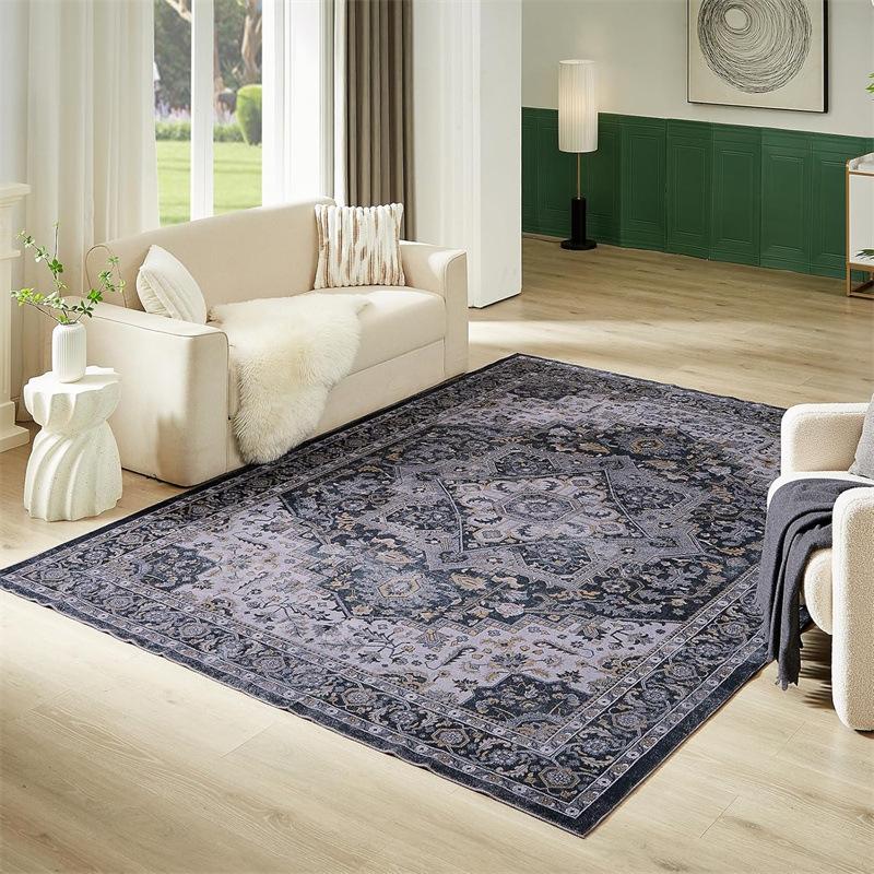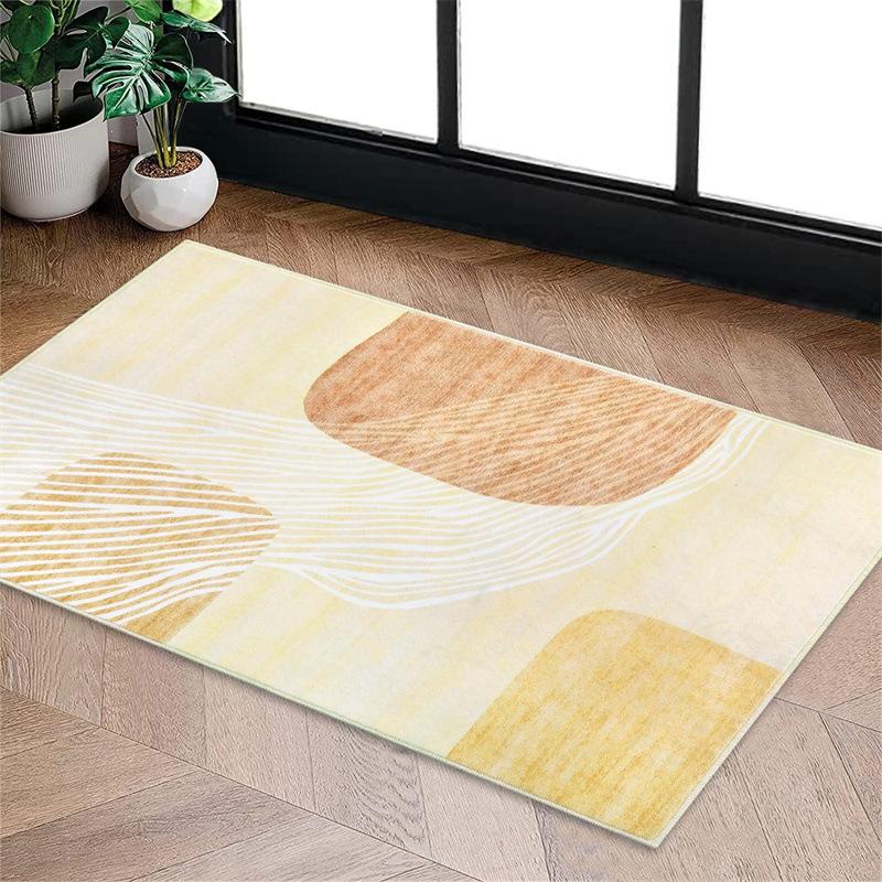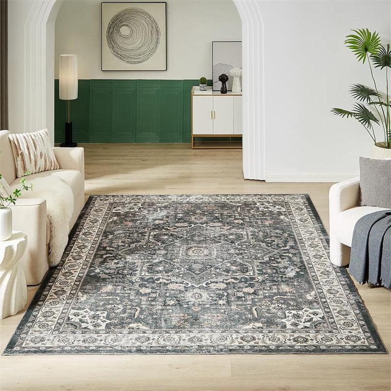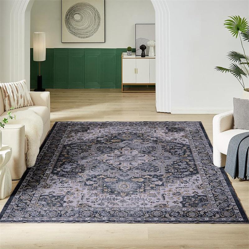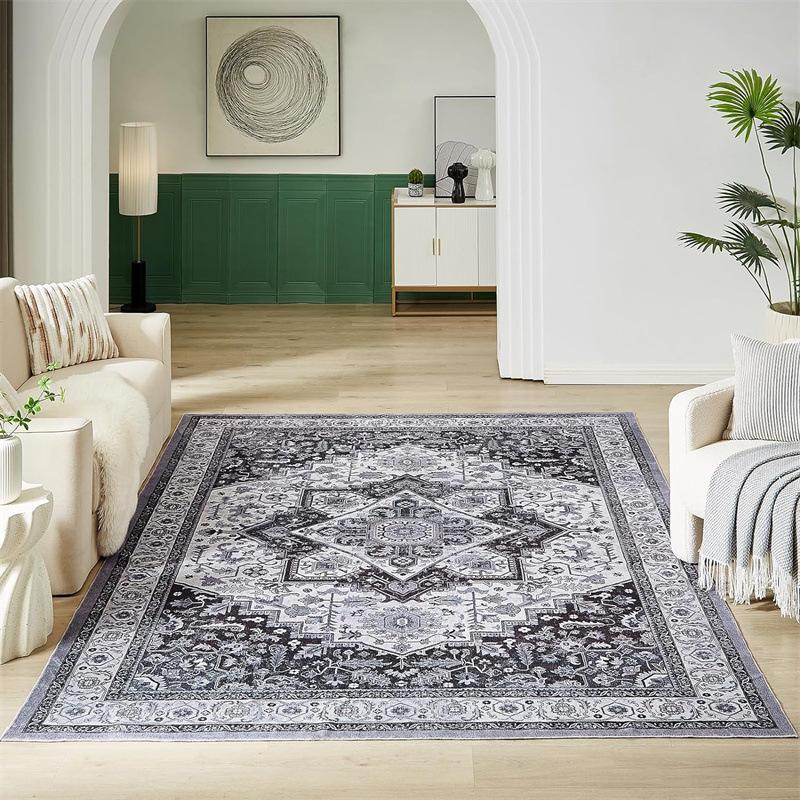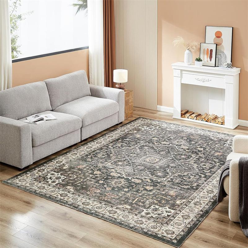 Alfombra de cachemira estilo bohemio con diseño de flores americanas retro transfronterizas para sala de estar, sofá, dormitorio, resistente a la suciedad, con borde antideslizante