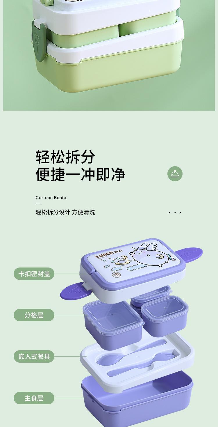 | Número de artículo y nombre del producto | 354 Fiambrera de dibujos animados de doble capa 4 en 1 (1350 ml) |