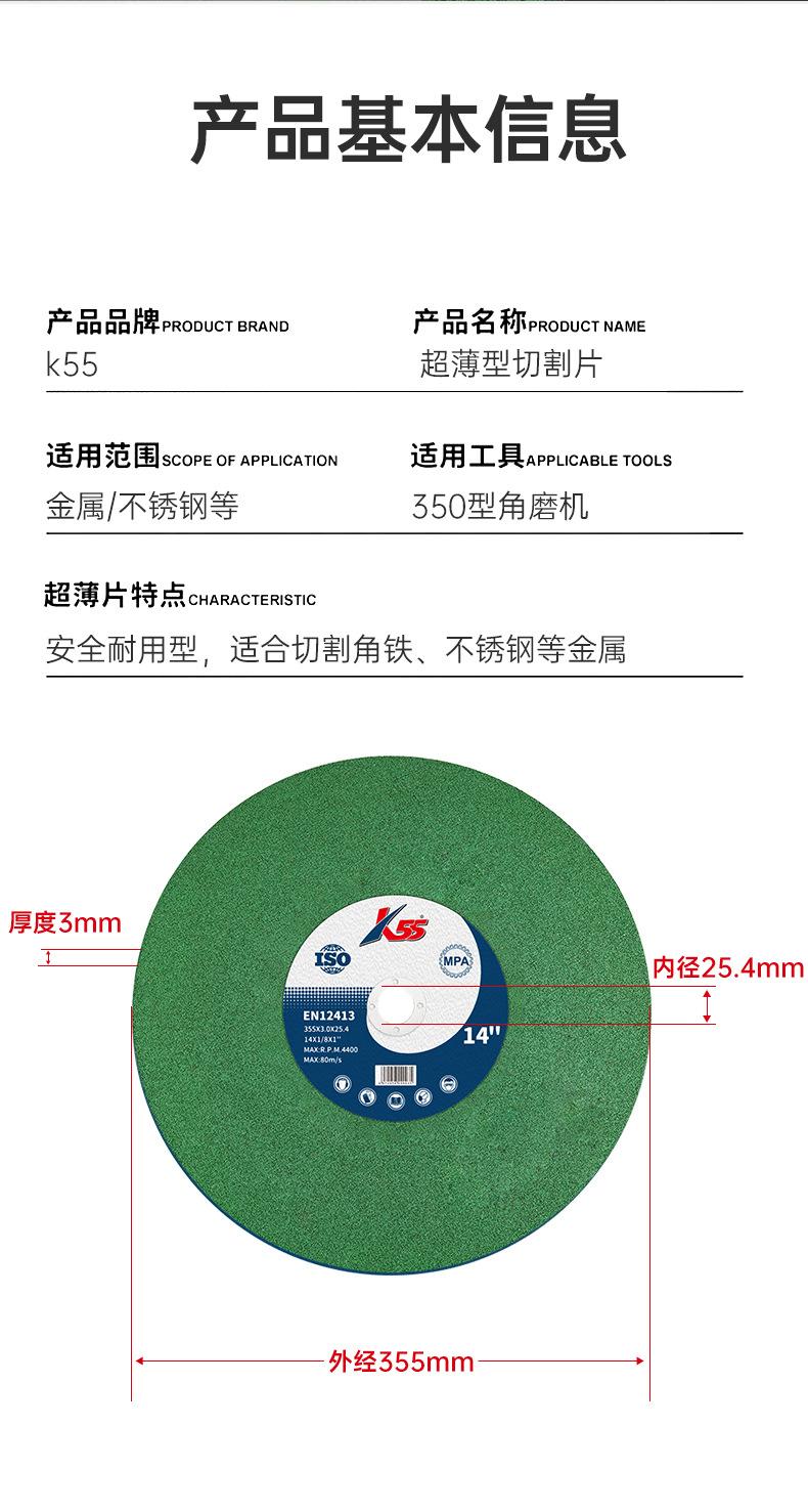 Muela abrasiva K55, pieza de corte 350, hoja de sierra grande y delgada de acero inoxidable de 14 pulgadas, rueda de corte y pulido, rueda de arena