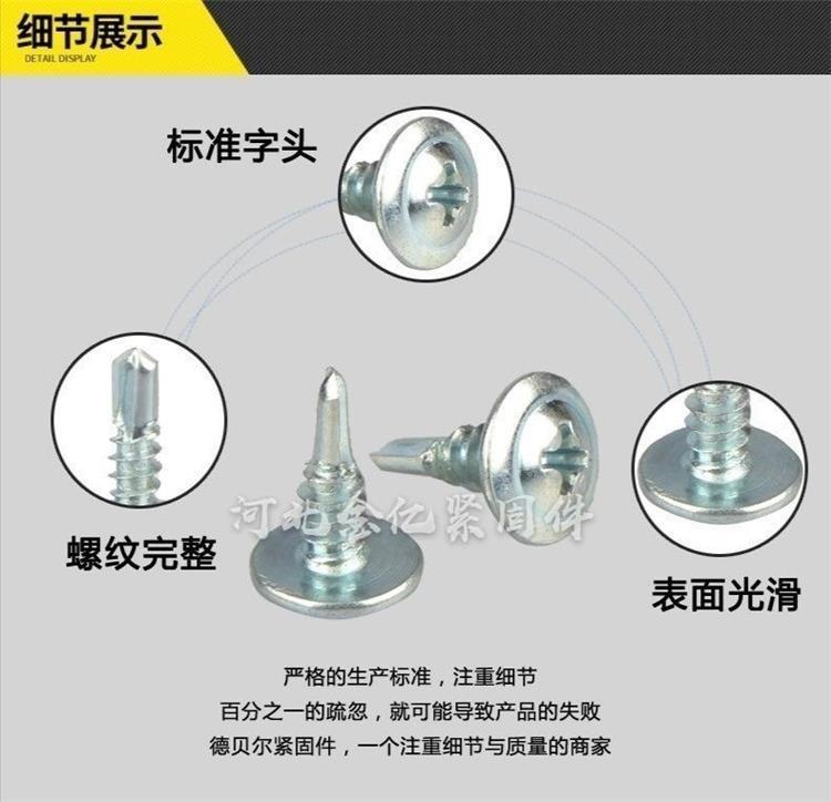 Tornillo de cera M4.2 con cabeza plana grande galvanizada, autorroscante y autoperforante de cola de milano, cabeza redonda grande