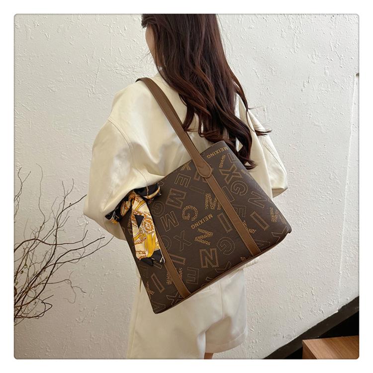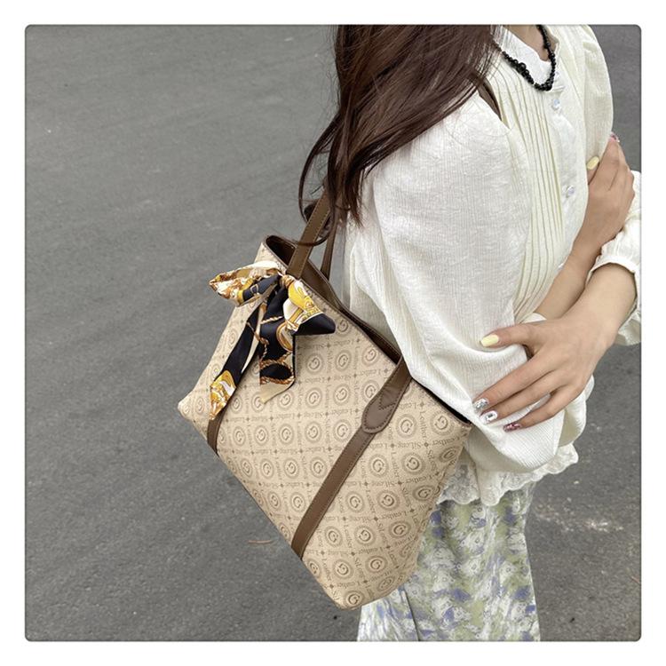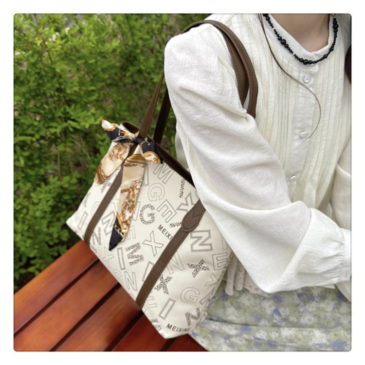 Bolso de mano cruzado de gran capacidad para mujer, novedad de verano 2024, bolso de hombro con estampado a juego.