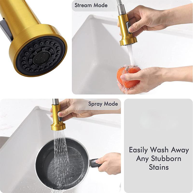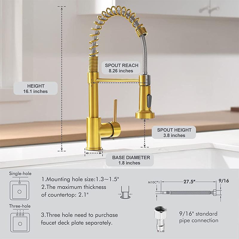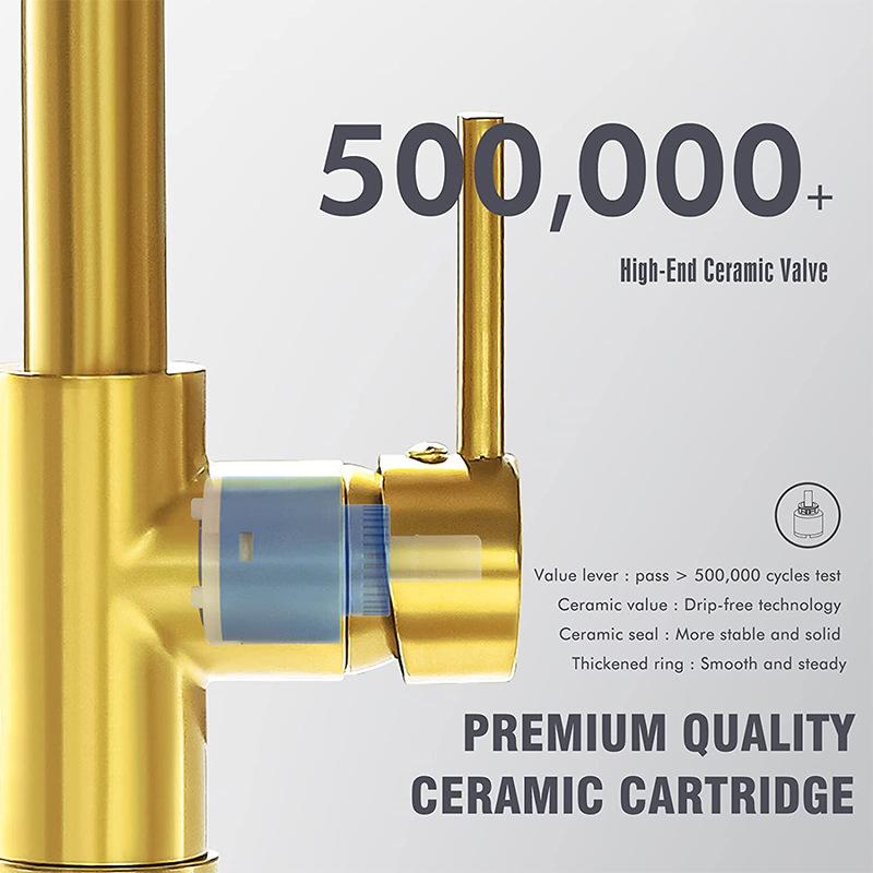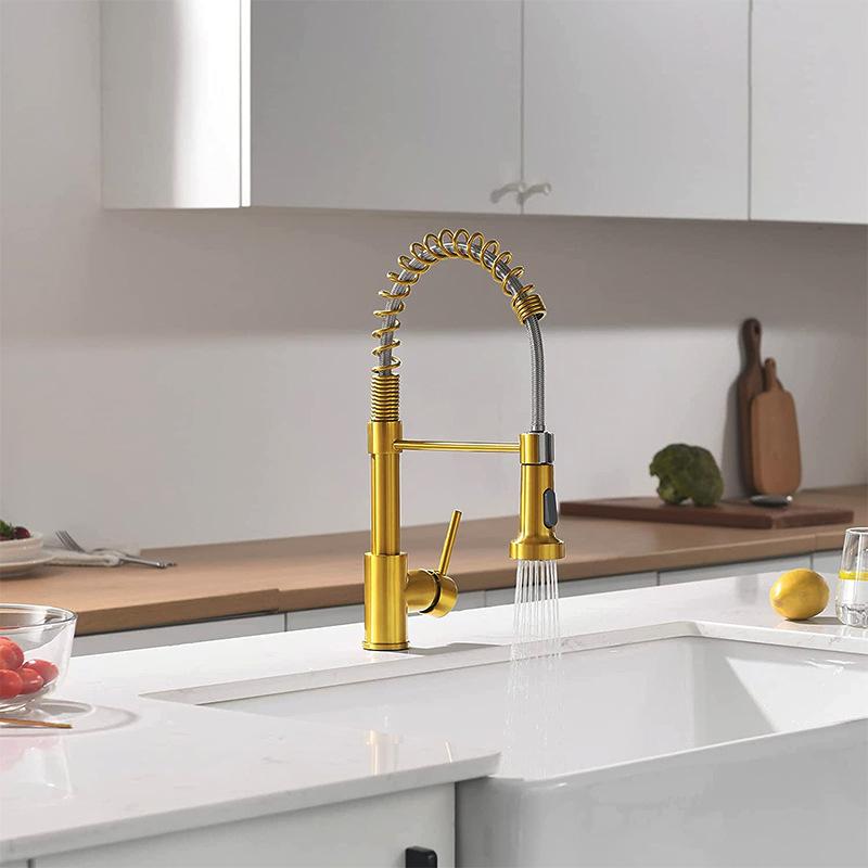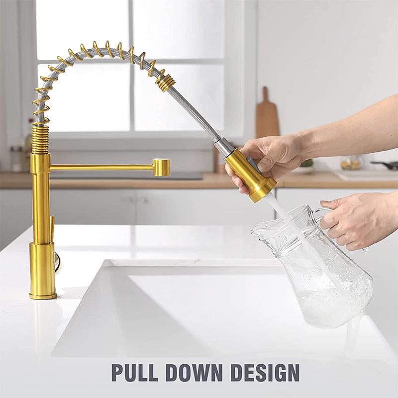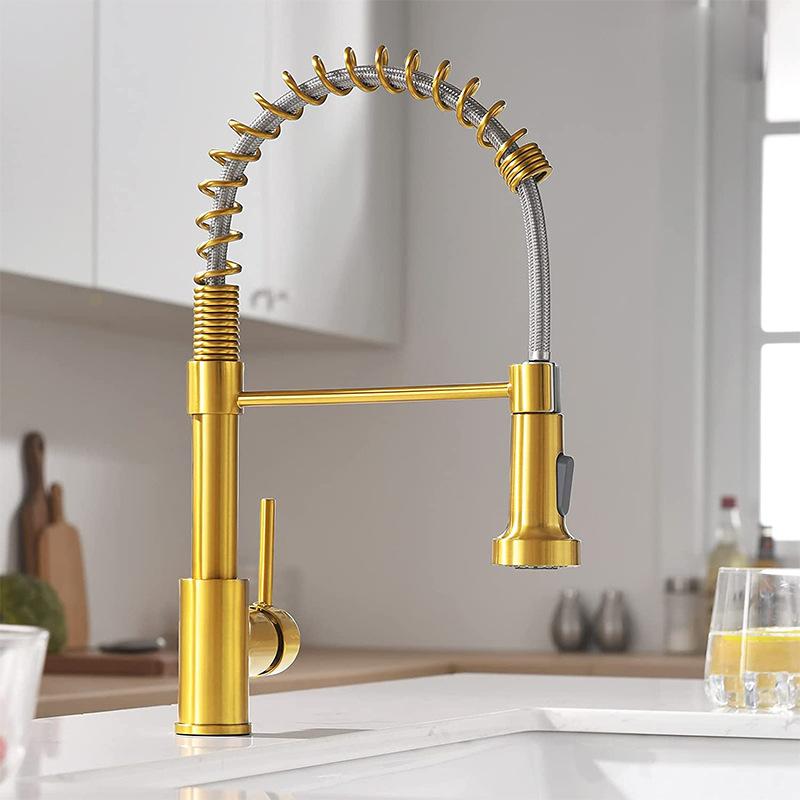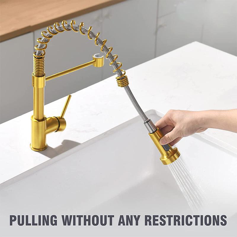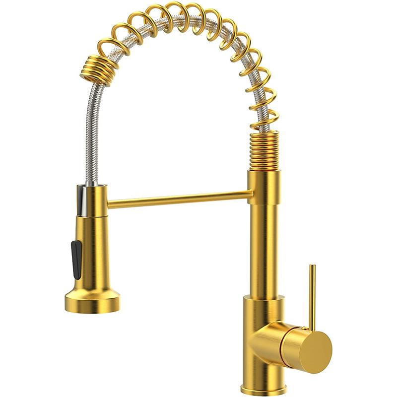 Grifo de cocina con resorte de cobre transfronterizo, extraíble y giratorio, pintado con aerosol dorado, para agua caliente y fría.