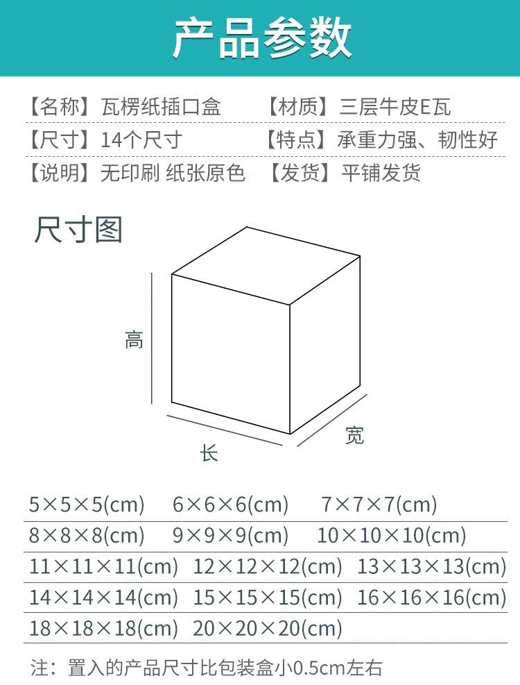 Cowhide color square corrugated box; 5×5×5cm, 1 shot, 10 shots, Cowhide color square corrugated box; 6×6×6cm, ...