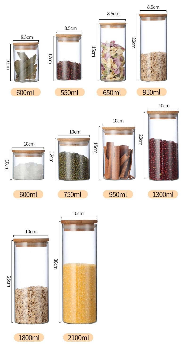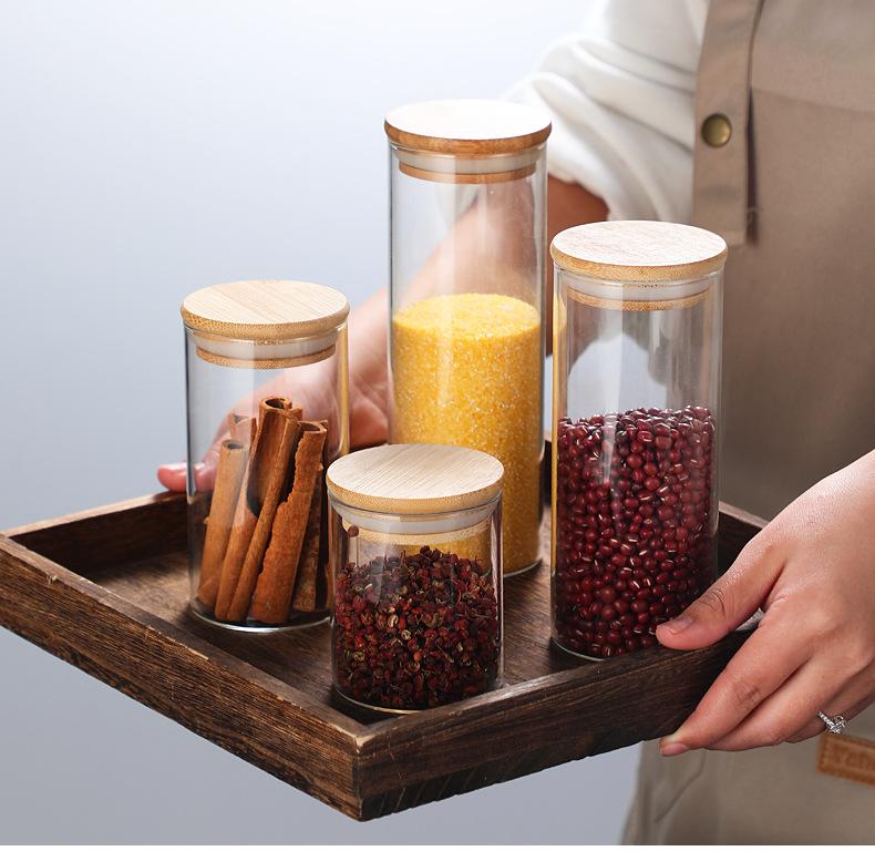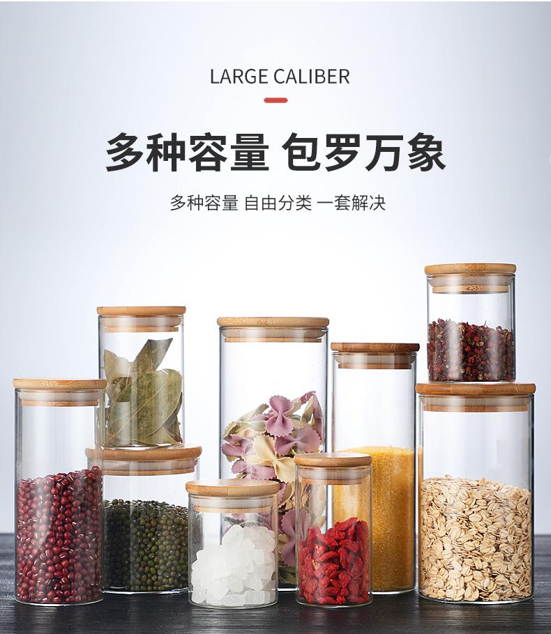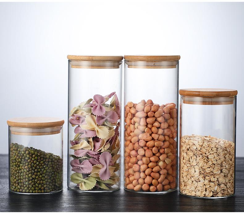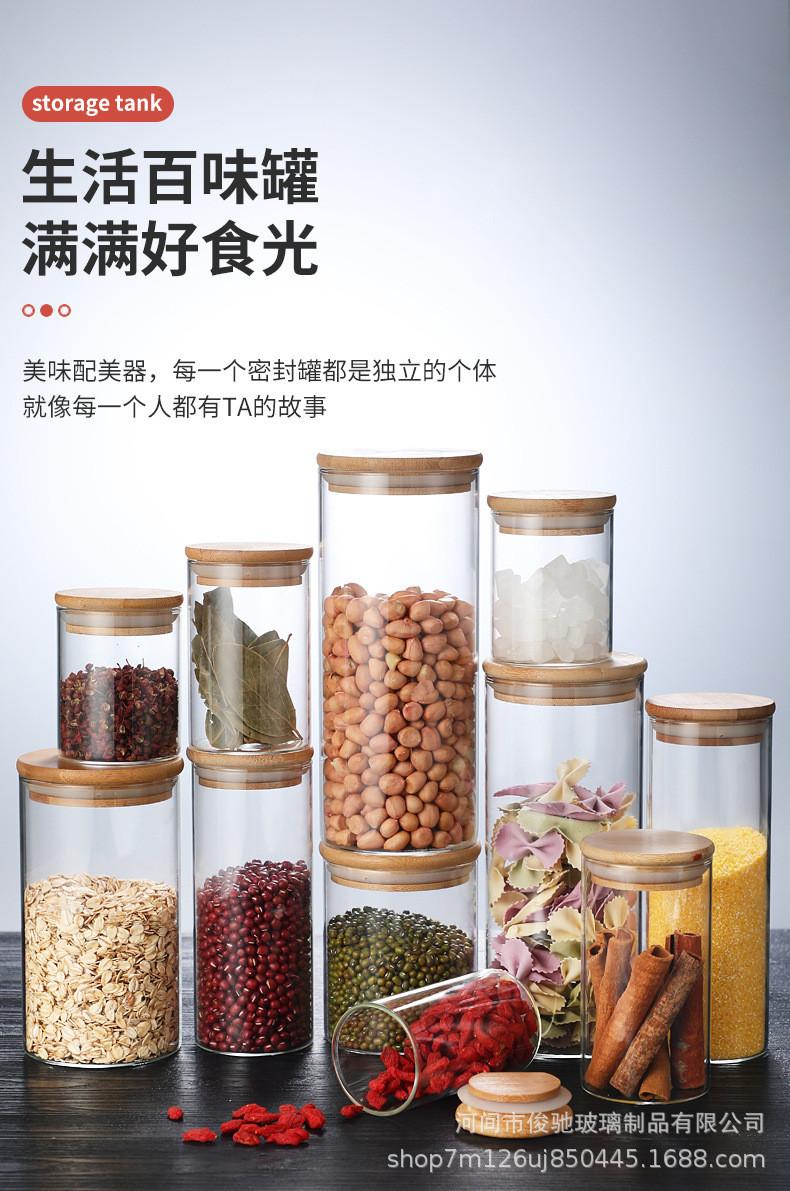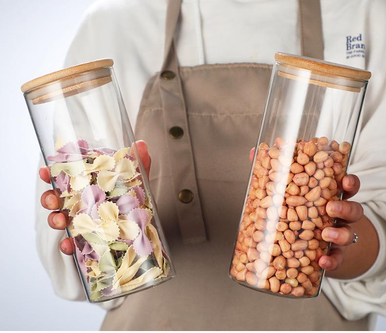 Fábrica al por mayor, frasco sellado de vidrio de borosilicato alto, frasco de té recto, botella de almacenamiento de refrigerios de frutas secas, frasco de almacenamiento de dulces
