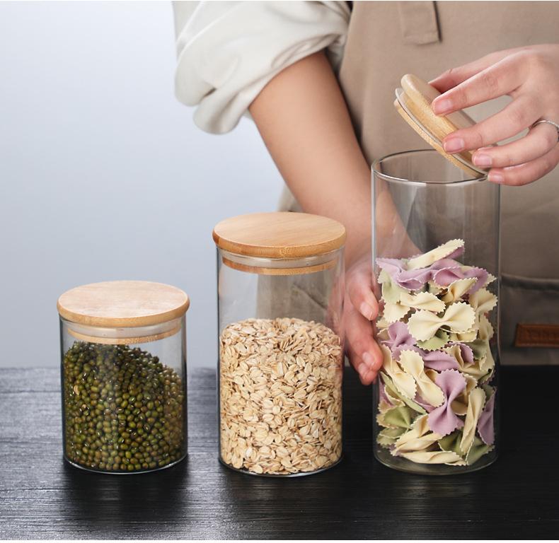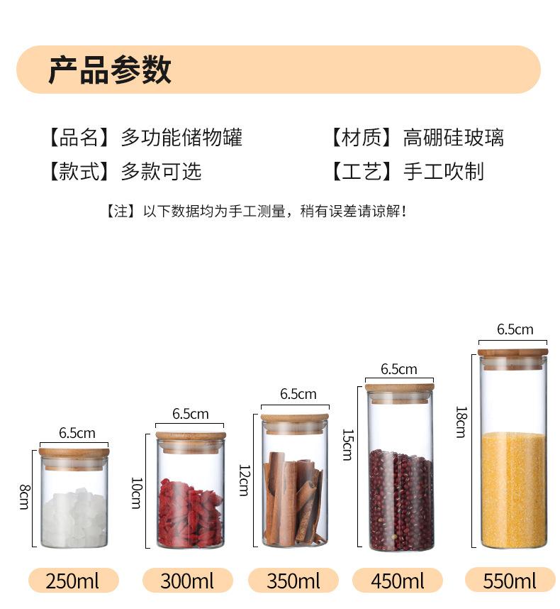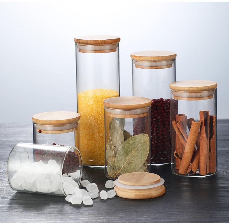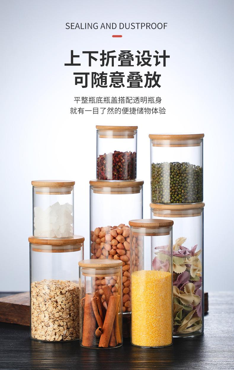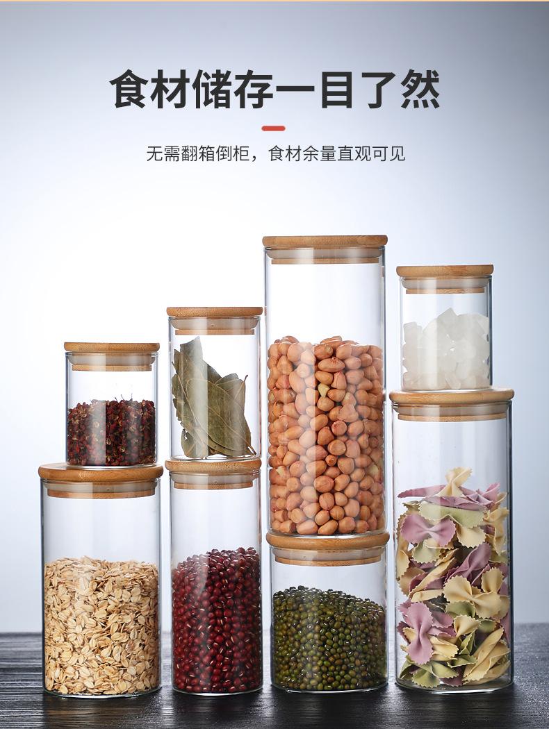 Fábrica al por mayor, frasco sellado de vidrio de borosilicato alto, frasco de té recto, botella de almacenamiento de refrigerios de frutas secas, frasco de almacenamiento de dulces
