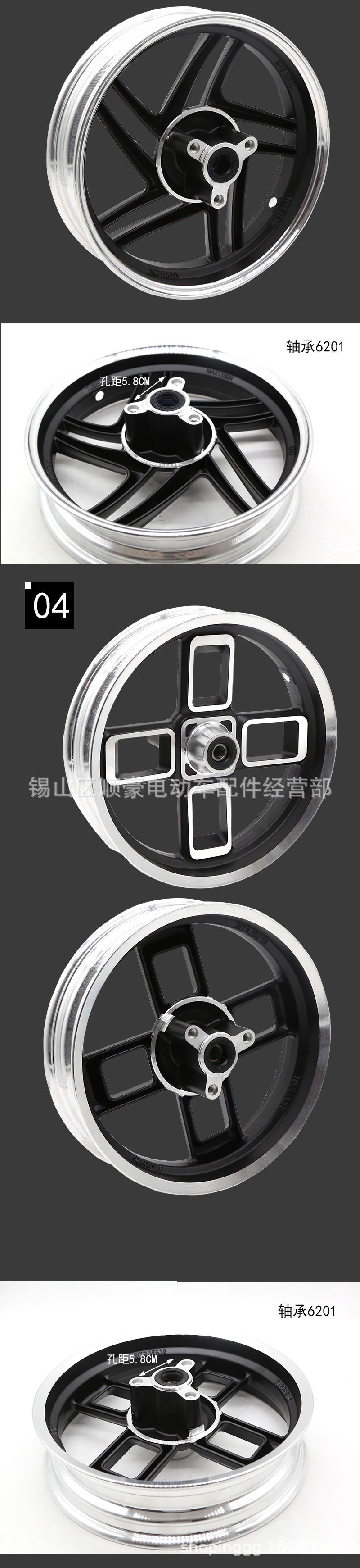 Accesorios para scooter eléctrico motocicleta eléctrica rueda de aluminio scooter anillo de acero modificado coche juego de anillo de rueda de freno de disco montaje de freno