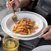 Plato de cerámica con relieve de línea dorada creativa blanca, plato de cena nórdico para el hogar, plato de ensalada