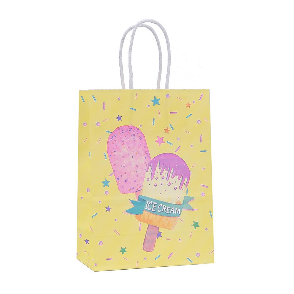Bolsa de Embalaje Impresa Bolsa Tote de Dibujos Animados de Helado Bolsa de Papel Kraft Venta al por Mayor Bolsa de Regalo Regalo Bolsa de Compras de Alimentos