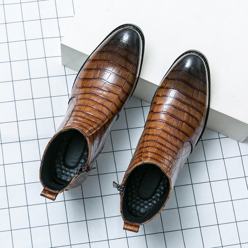 Compra 2024 nuevos zapatos para hombre, zapatos casuales de talla grande transfronterizos, botas altas de cuero de moda para hombre, zapatos de cuero de estilo británico de tendencia. al por mayor en Joom.pro