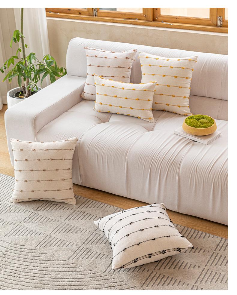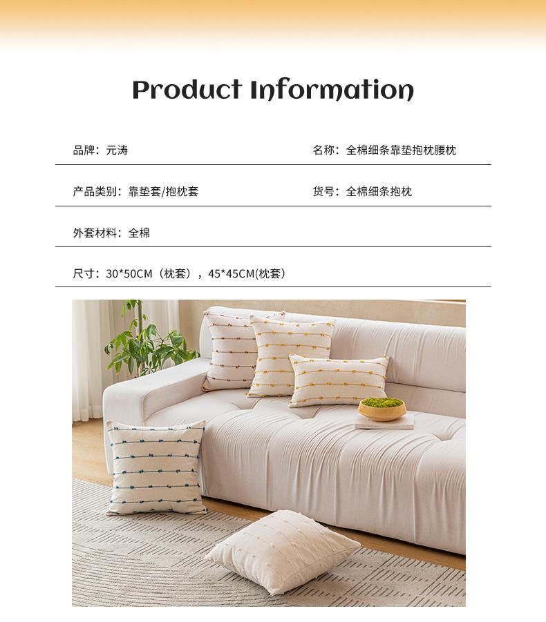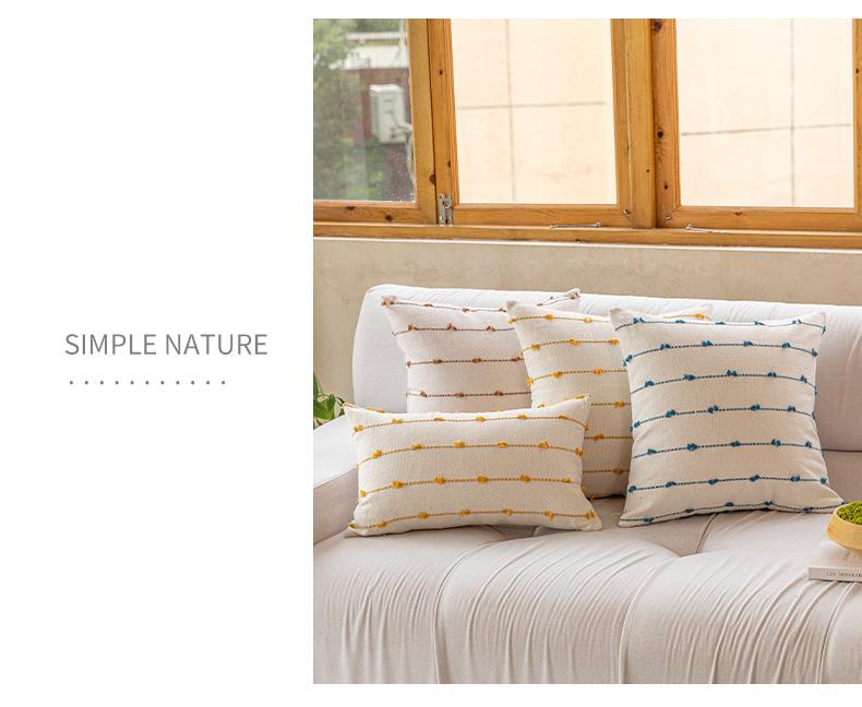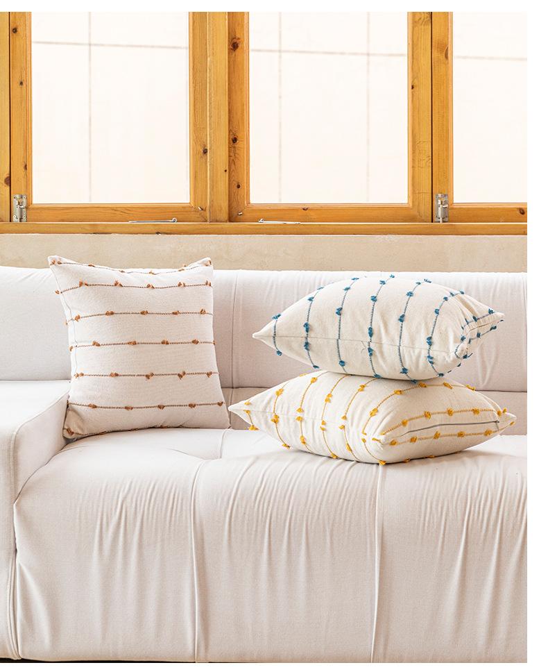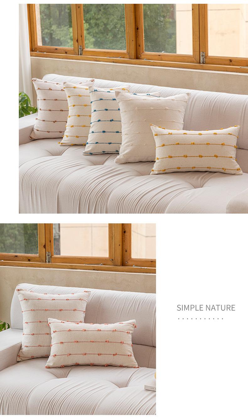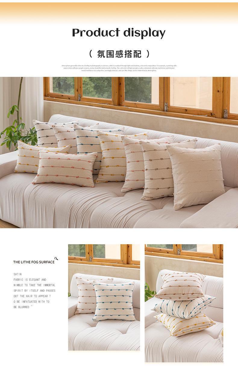 Almohada Simple Moderna Algodón Corte de Tiras Finas Funda de Almohada con Flores Hogar Mesita de Noche Dormitorio Sofá Sala de Estar Funda de Almohada Desmontable