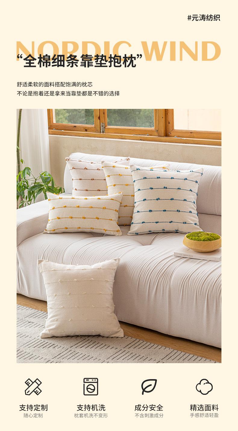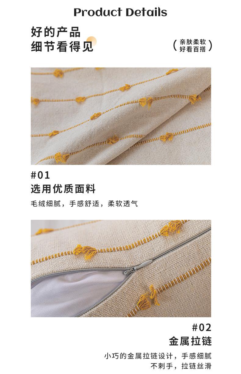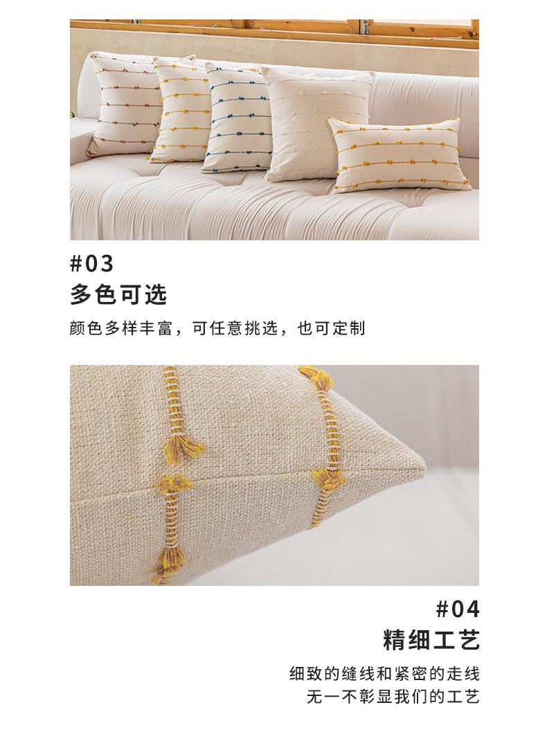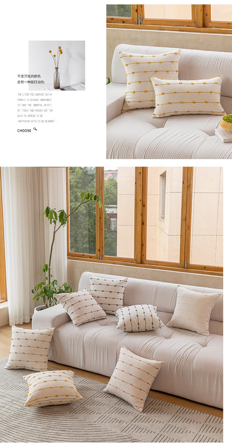 Almohada Simple Moderna Algodón Corte de Tiras Finas Funda de Almohada con Flores Hogar Mesita de Noche Dormitorio Sofá Sala de Estar Funda de Almohada Desmontable