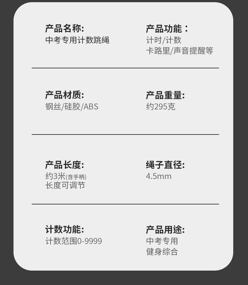 The rope is about 3.0m long (length adjustable), 4.5mm in diameter, and weighs about 295 grams