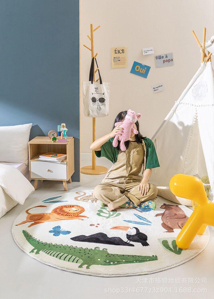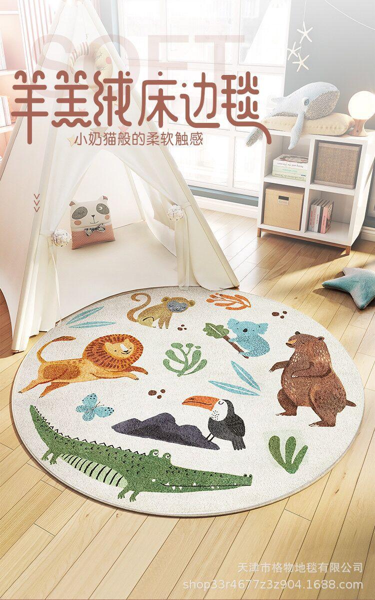 Alfombra redonda transfronteriza con bonitos dibujos animados para habitación infantil, dormitorio, cama completa, mesita de noche, sala de estar, sofá, mesa de centro, alfombrilla para el suelo