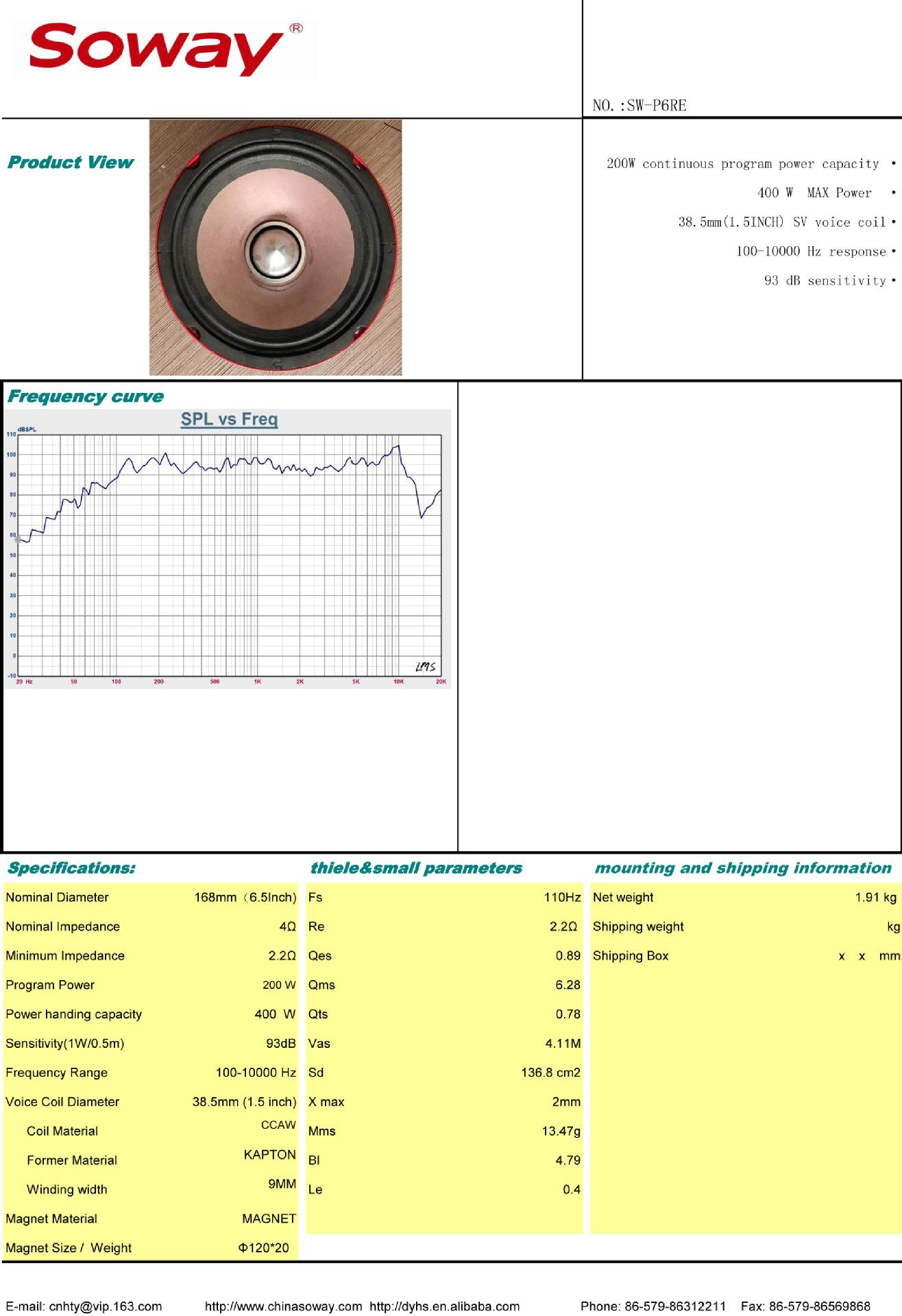Altavoz para coche Soway marca internacional de 6.5 pulgadas SW-P6RE