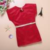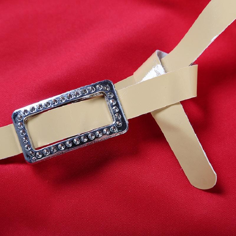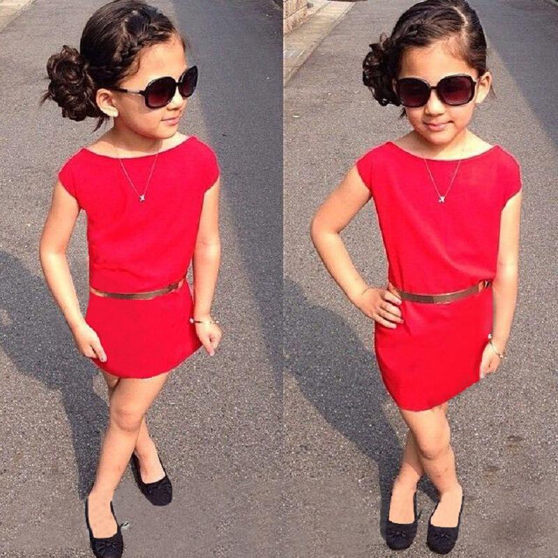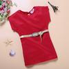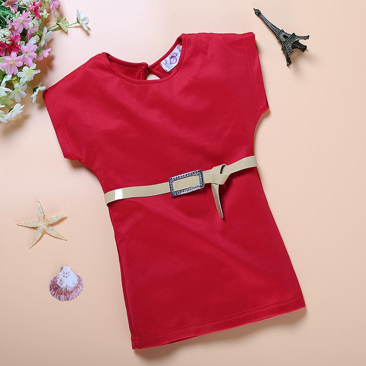 [Estilo] Vestido rojo brillante de niña europea y americana de una pieza, moderno para niña con cinturón, fabricante mayorista de falda chaleco