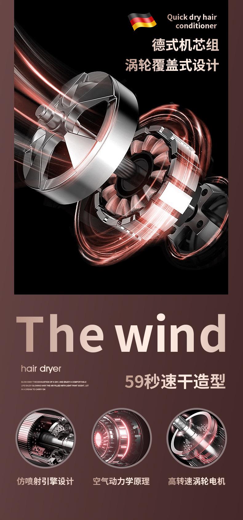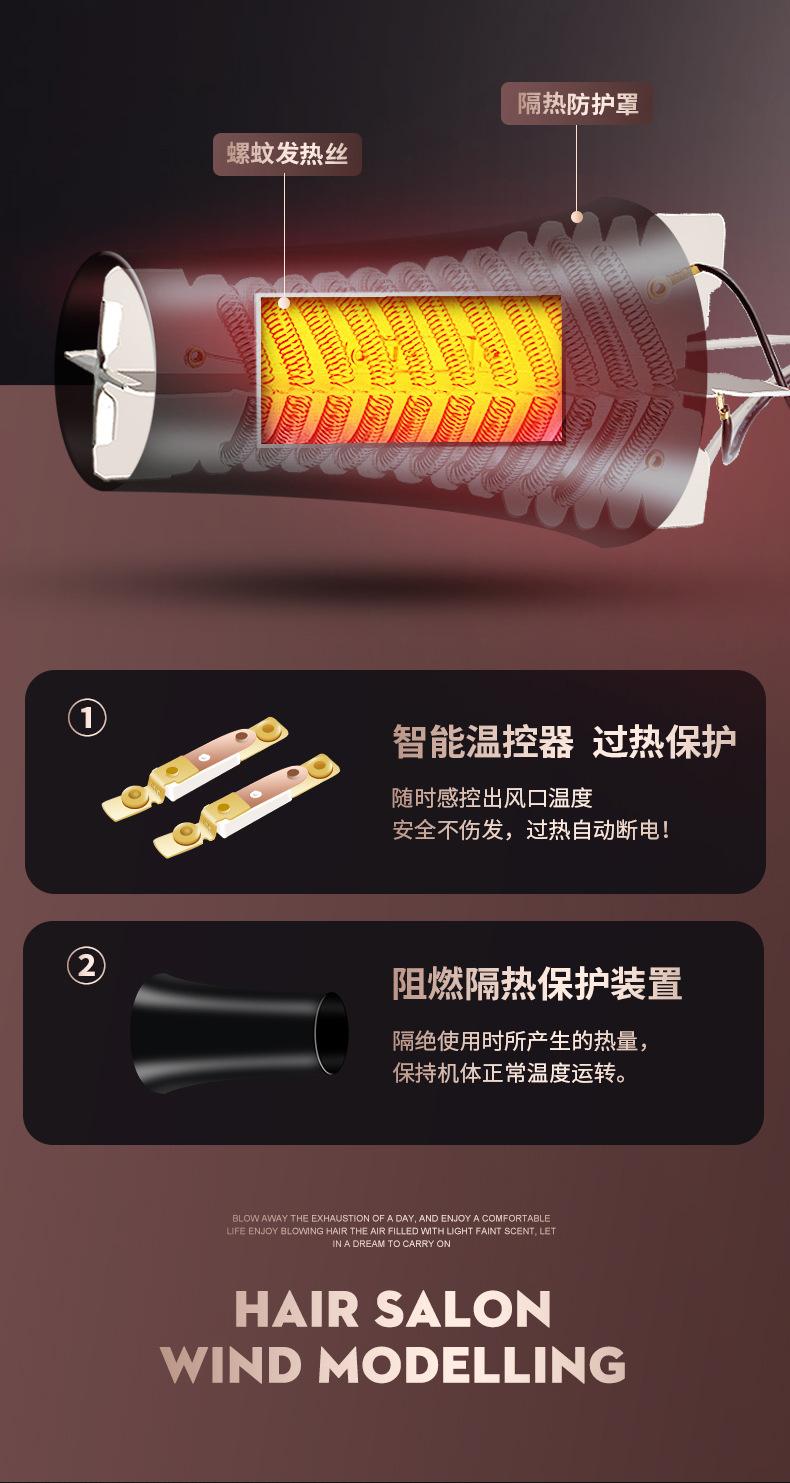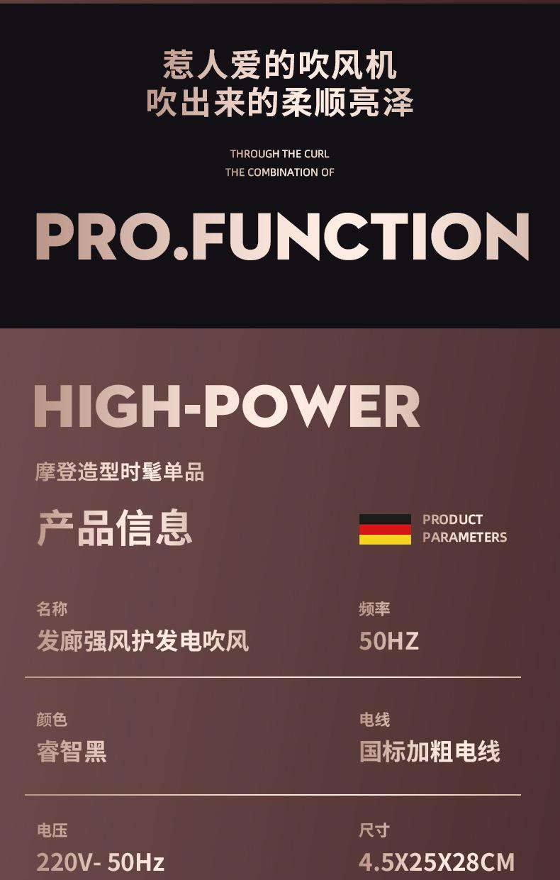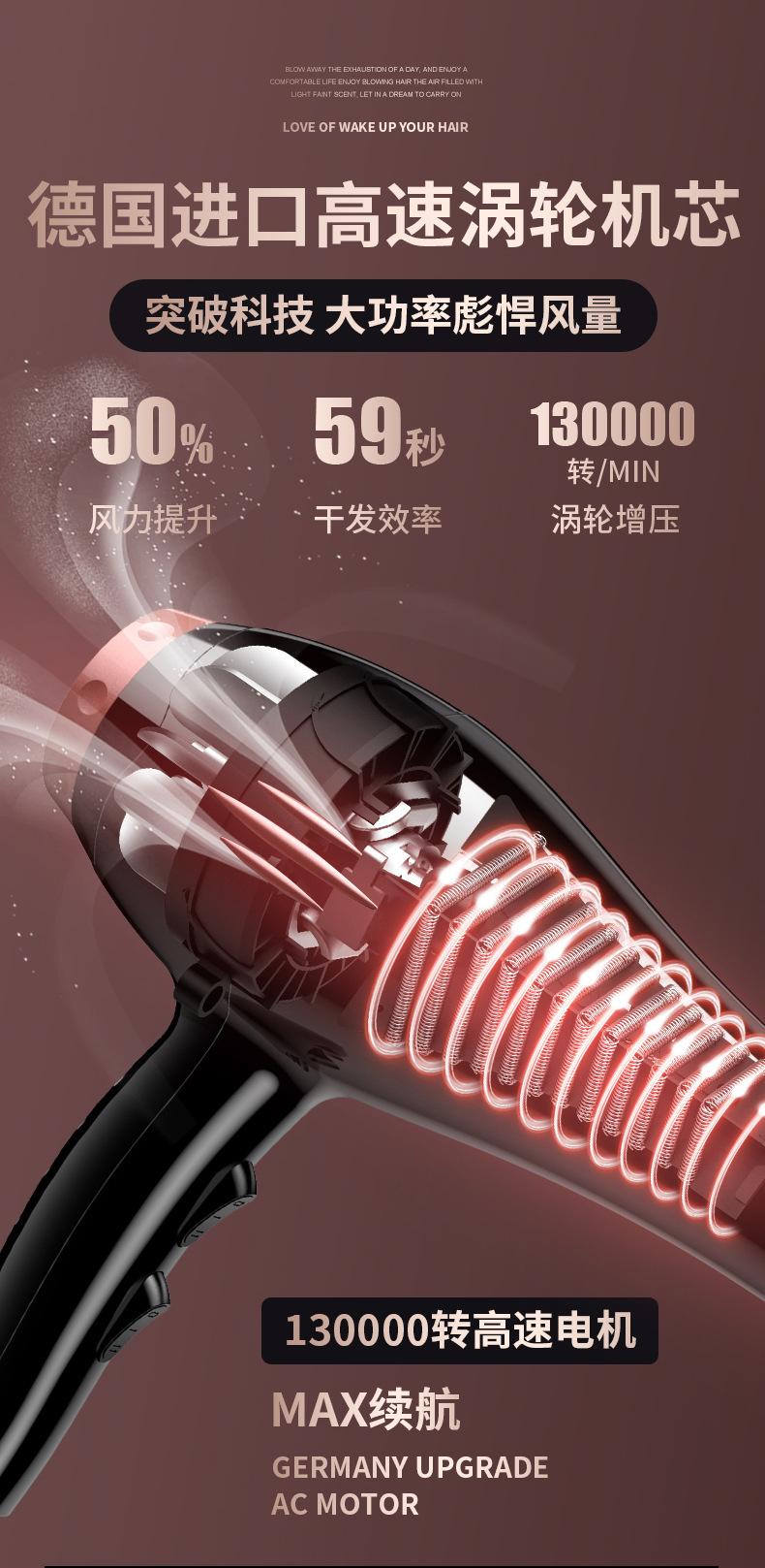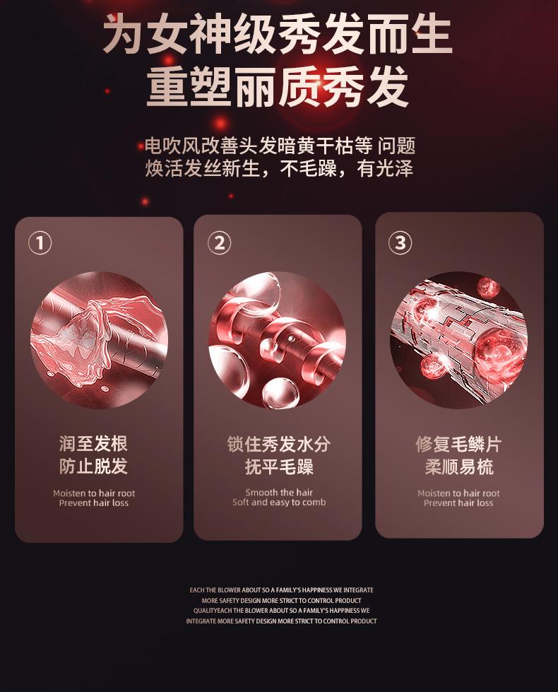 Blue light, Negative ions, Constant temperature hair care, Hot and cold alternating wind