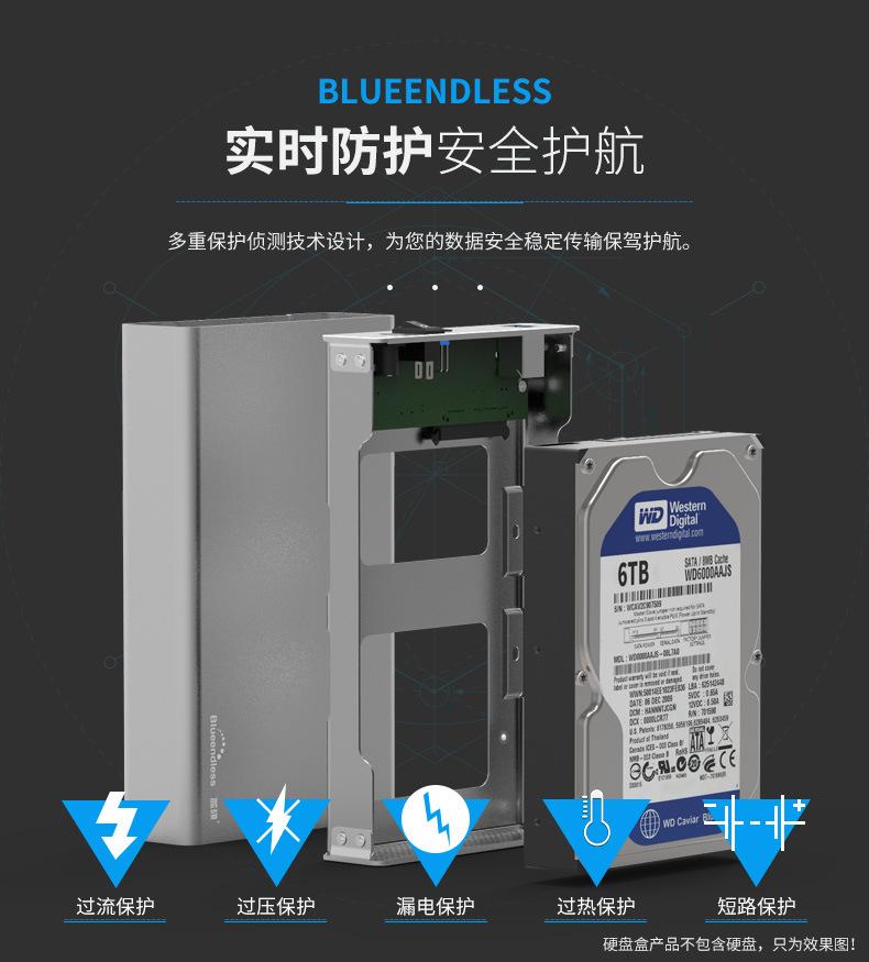 Carcasa para Disco Duro Móvil de 3.5 Pulgadas 20Tb USB/Tipo-C Escritorio Sata Externo Completamente Metálico Transmisión de Alta Velocidad