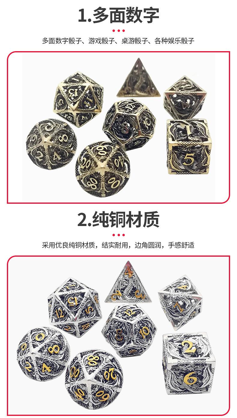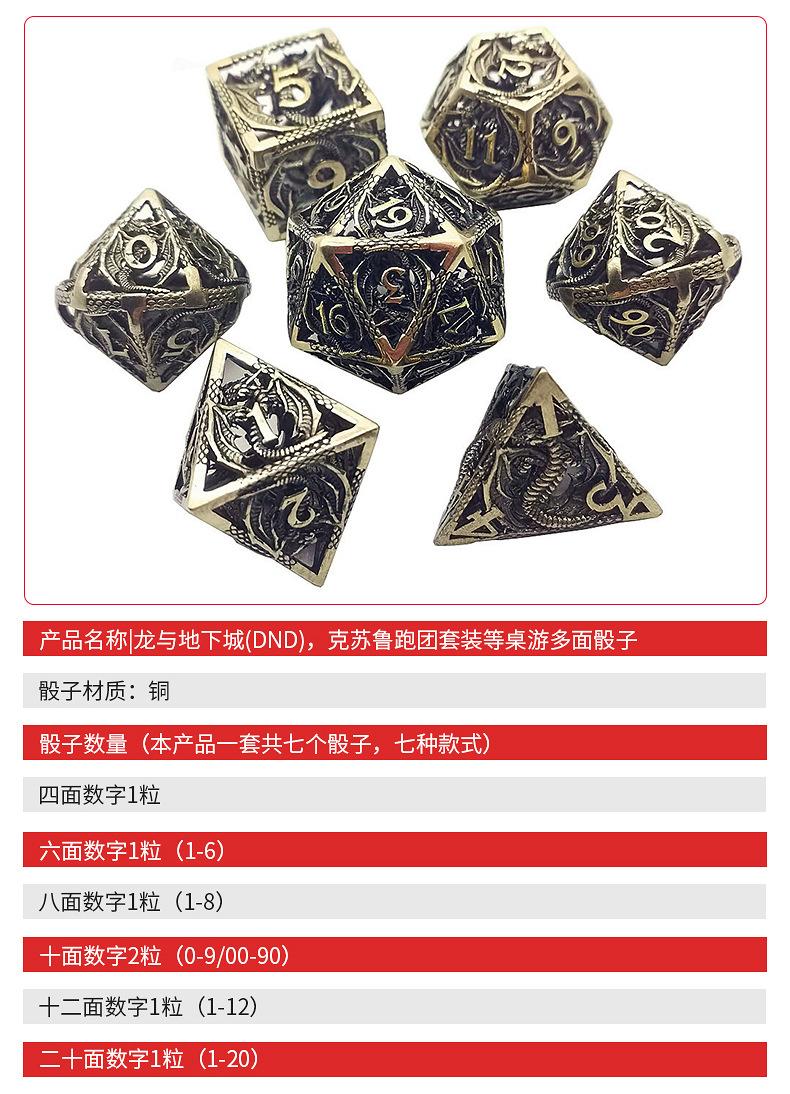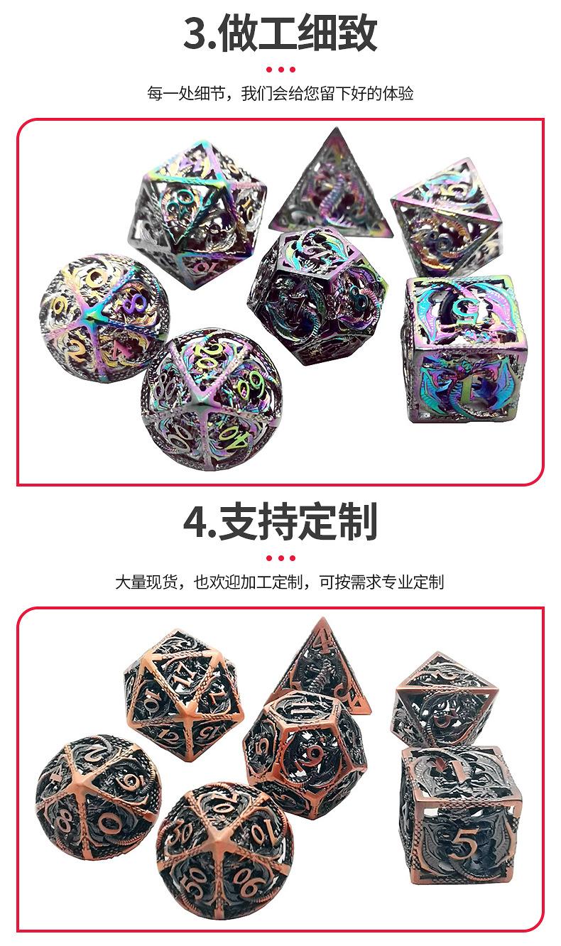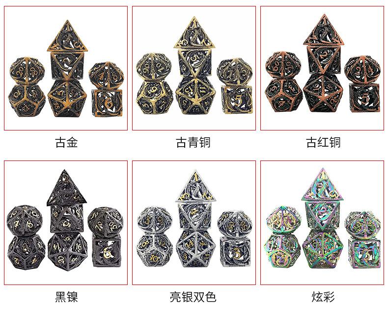 Dados de metal de fábrica, dados huecos personalizados, dados de dragón, nuevos dados creativos con temática de mazmorras y dragones.