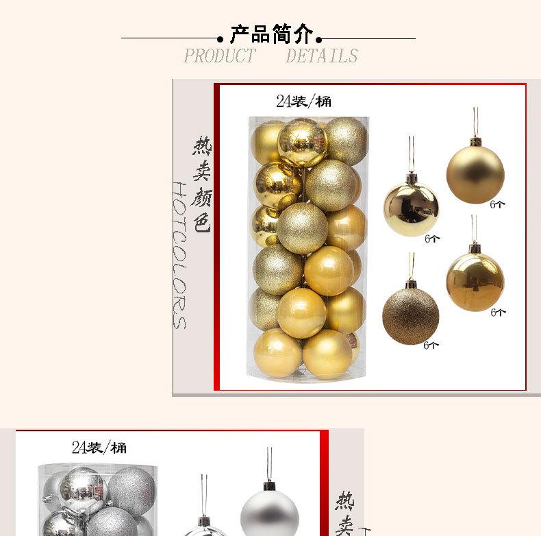 Bolas navideñas de plástico con forma de barril, 24 unidades, chapadas en PS, para árbol de Navidad, decorativas, colgantes, coloridas, doradas, plateadas y rojas.