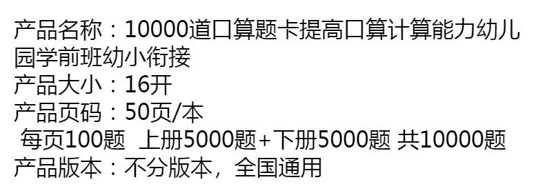 There are 2 pre-school oral calculation 10000 questions in the first volume + the second volume