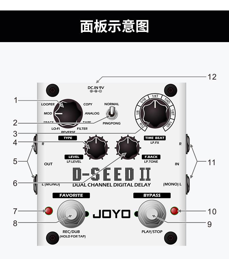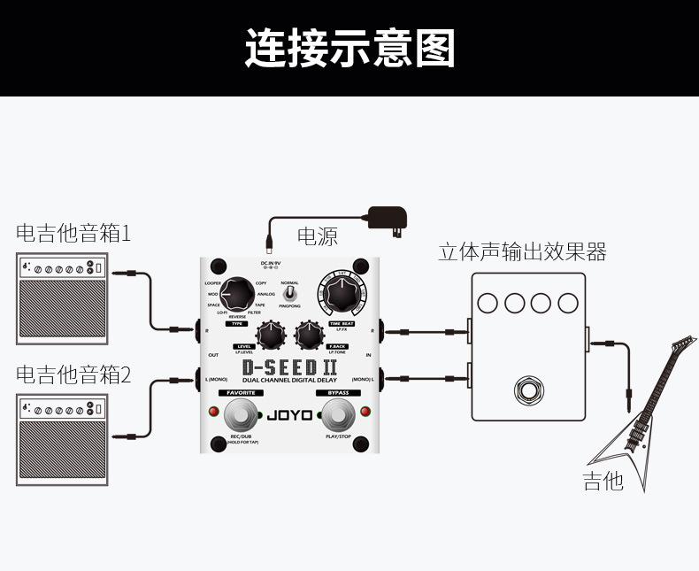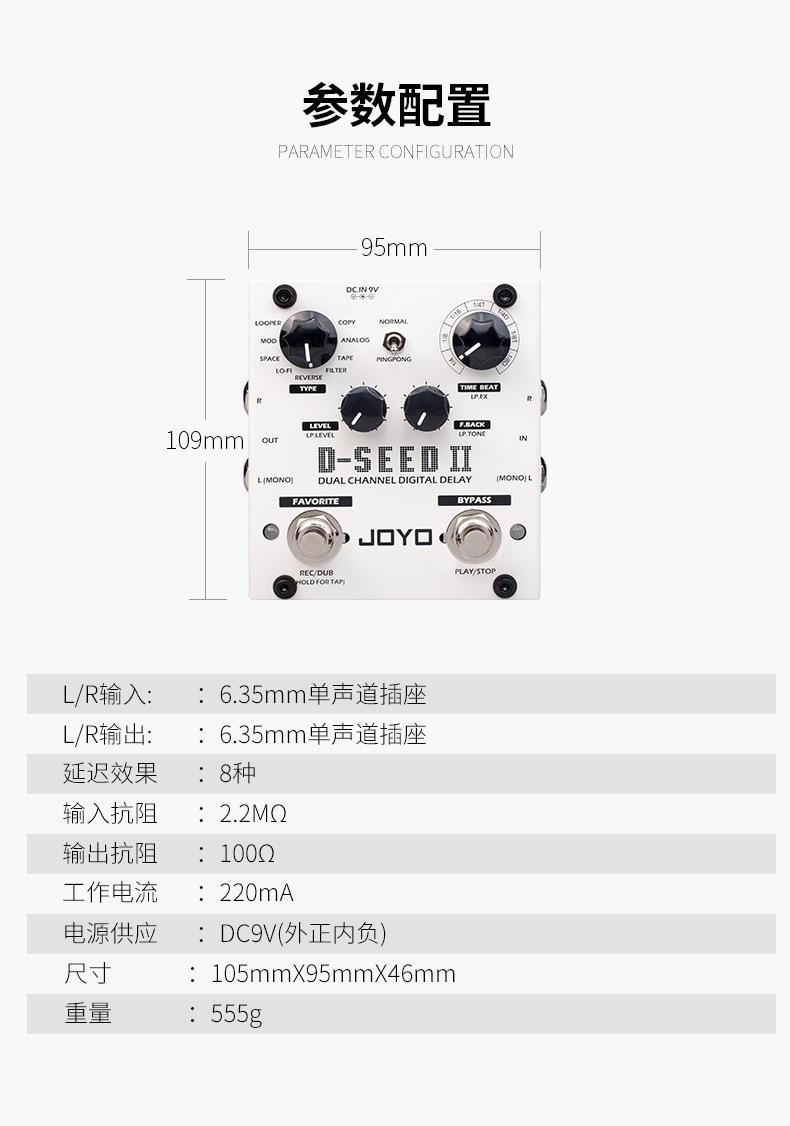 JOYO Zhuo Music Guitar Stereo Digital Delay Efector Monobloque LOOPER Grabación en Bucle D-SEED II
