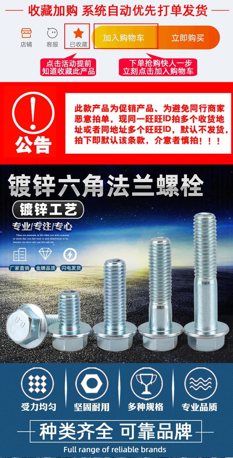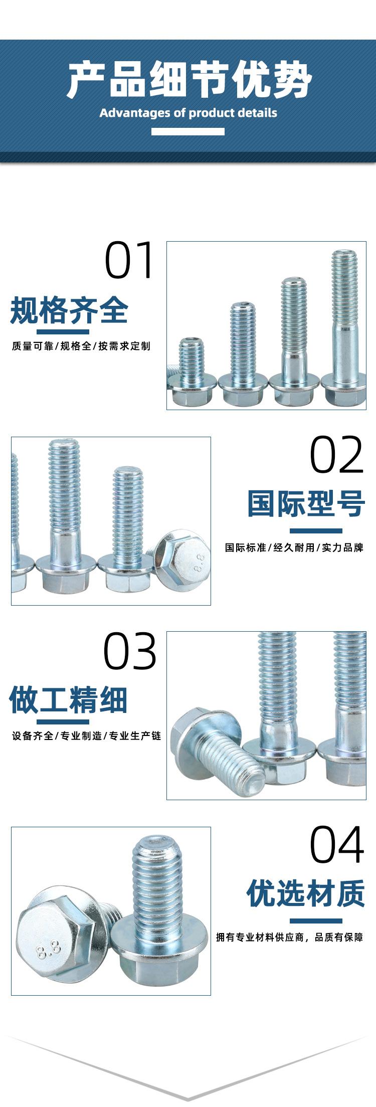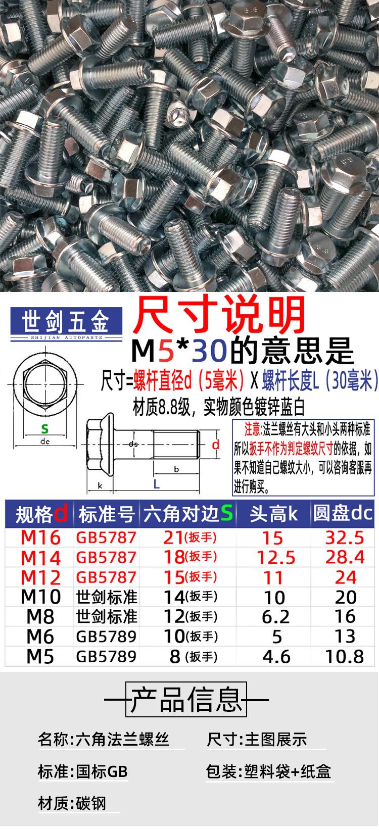 Tornillo de brida hexagonal galvanizado de grado 8.8, perno de cabeza extragrande GB5789, superficie con junta, 5 m 6 cm, M10 M12