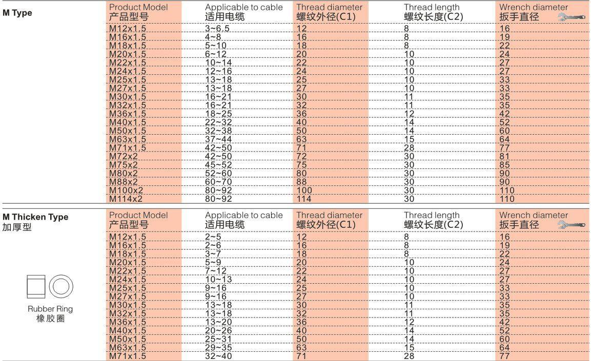 M8, M10, M12, M16, M18, M20, M22, M24, M25, M27, M30, M32, M36, M40, M50, M63, M8 + with O-ring, M10 + with O-...