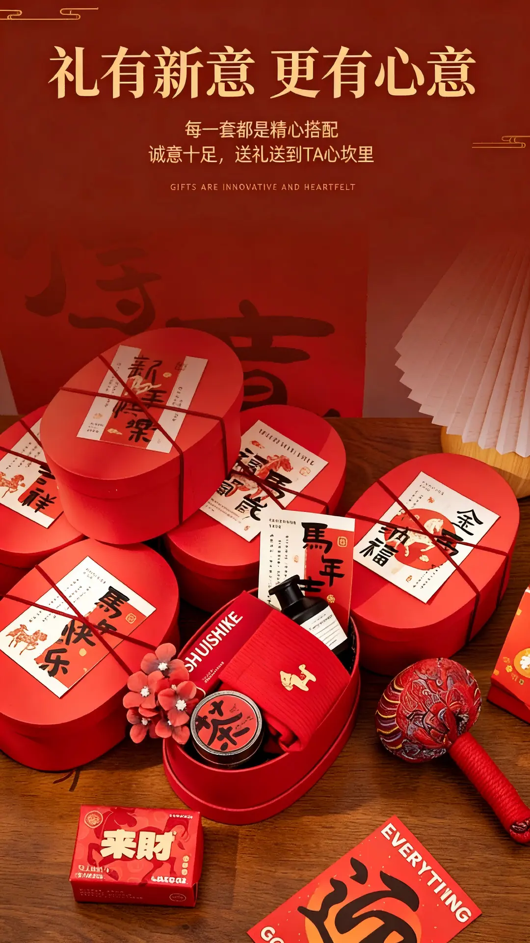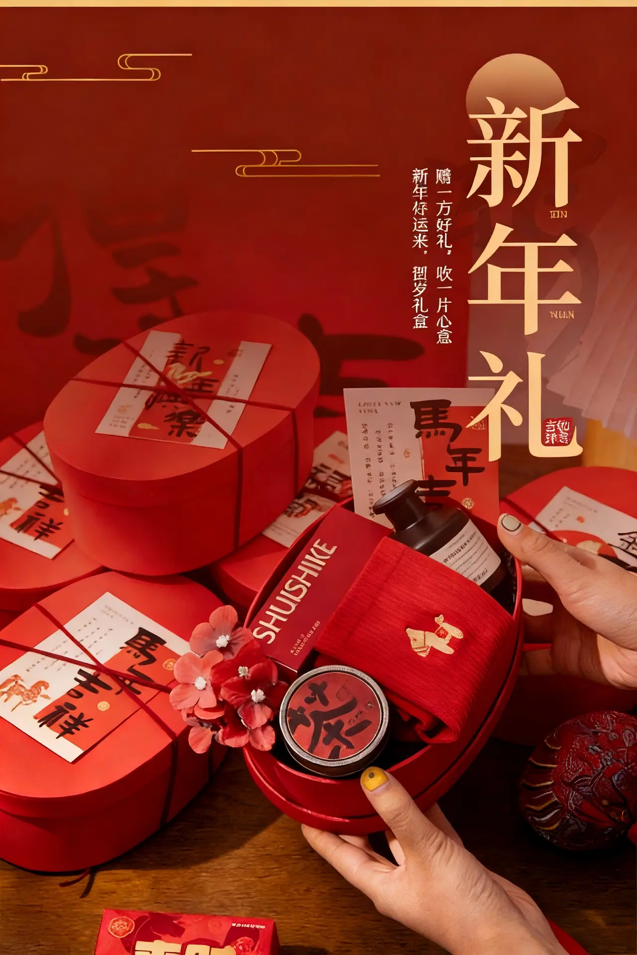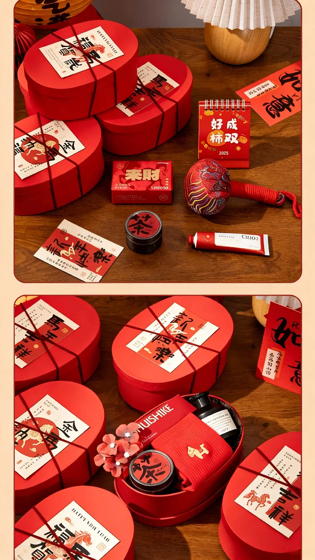 Caja Ovalada de Papel Kraft Caja de Regalo Roja de Año Nuevo Caja para Galletas Caja para Dulces Caja de Empaque para el Festival de Primavera 2026