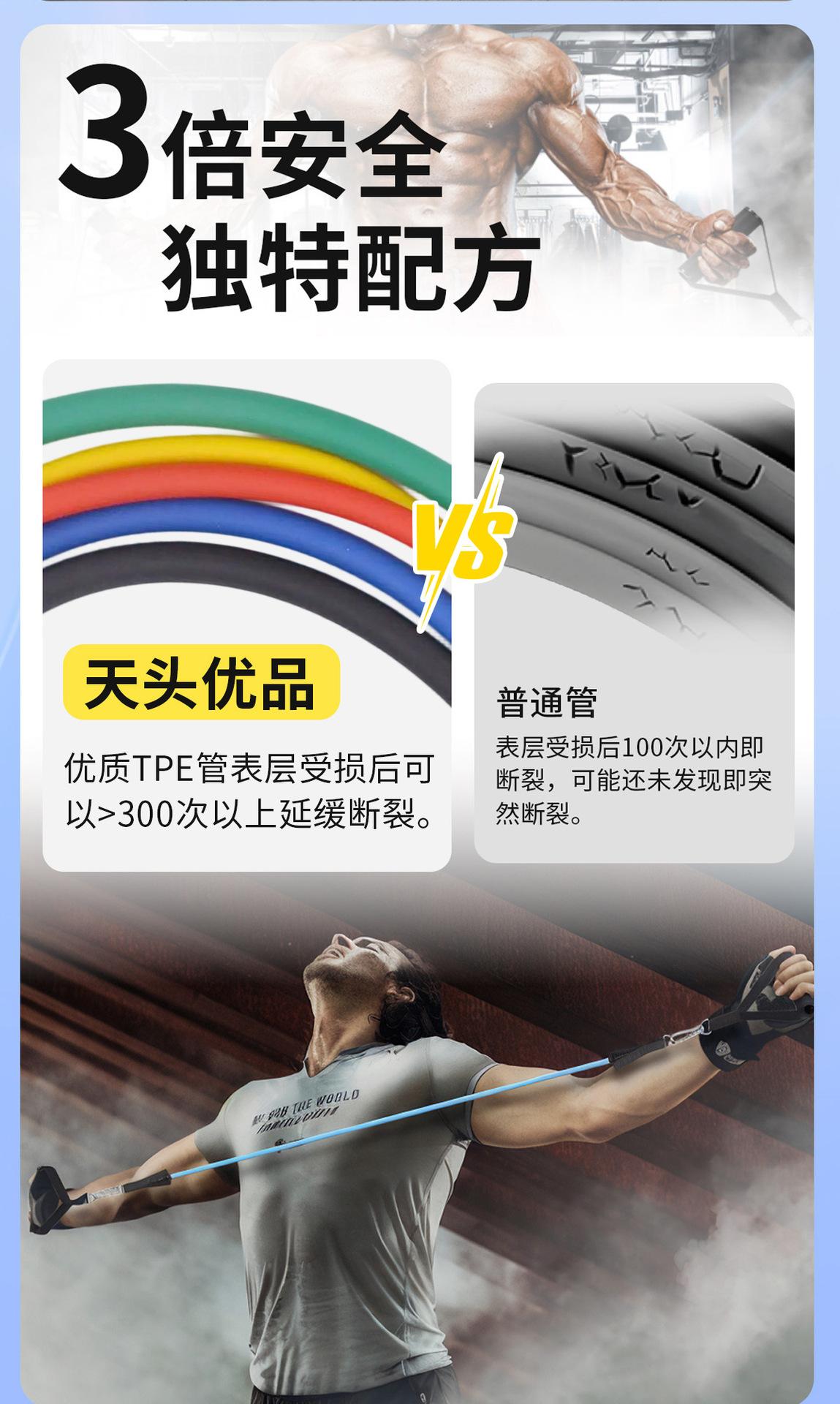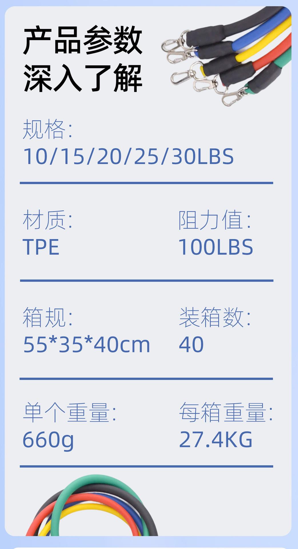 Set de 11 piezas más vendido transfronterizo de equipo de fitness con cuerda de tensión, set tensor, cuerda elástica de TPE para el hogar, banda elástica