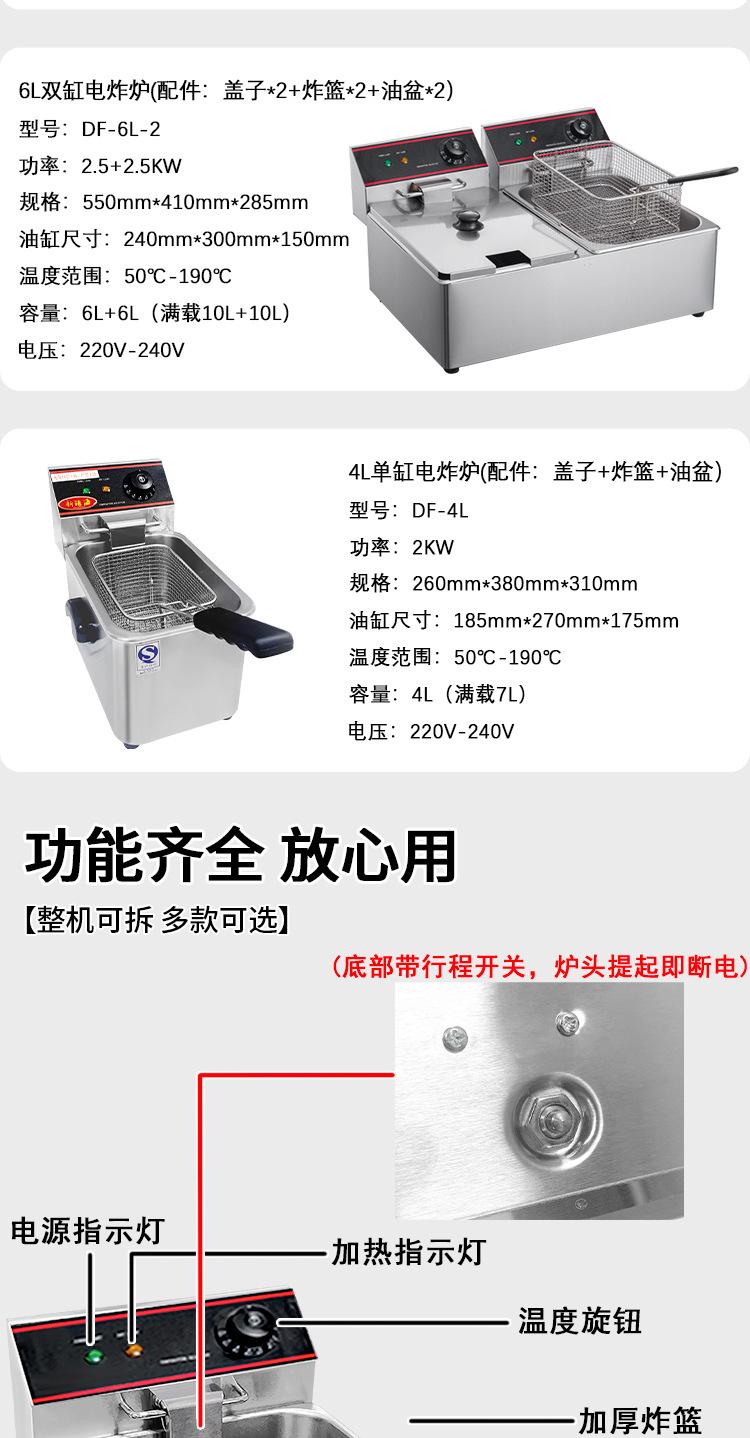 Xinsuihai Freidora Comercial 4L Freidora de Cilindro Único Papas Fritas Pollo Frito Tofu Apestoso Equipo de Cuerda Frita Fritura Eléctrica a Temperatura Constante