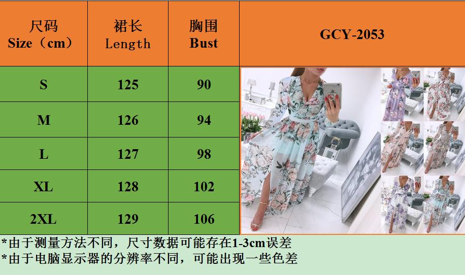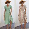 Vestido bohemio estampado de gasa con cuello en V y manga larga de verano para mujer de la estación independiente "Deseo Amazon" de 2024.