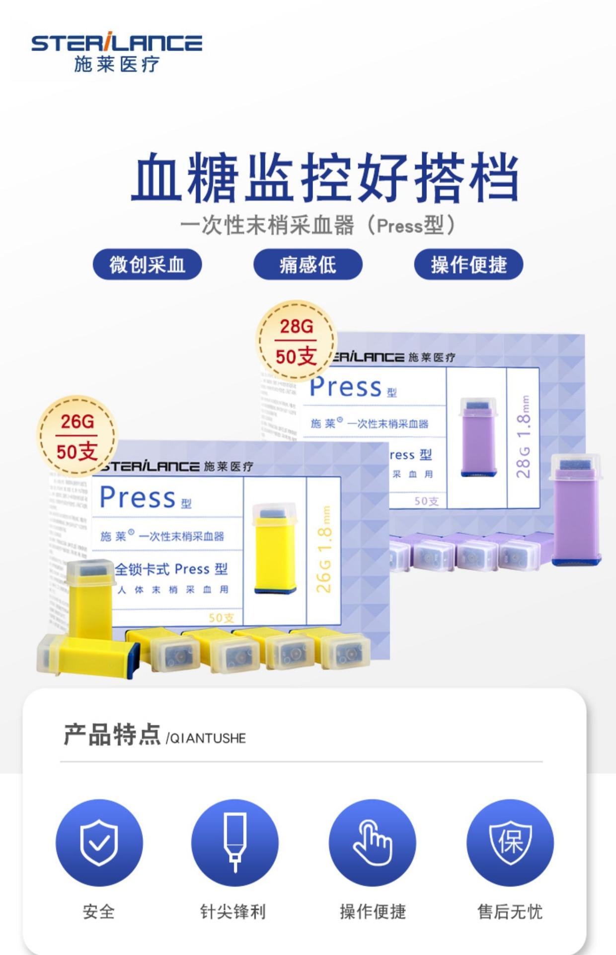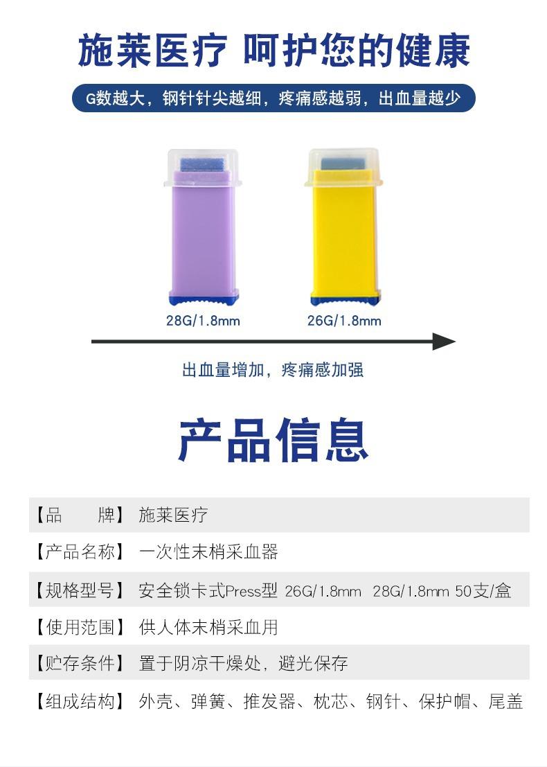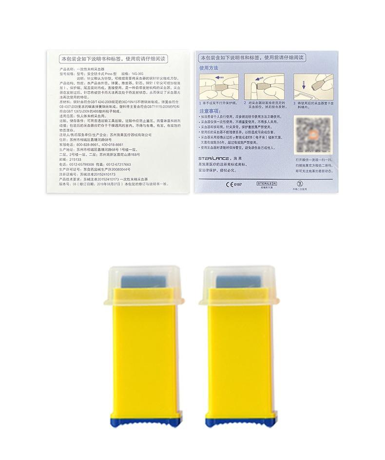 Dispositivo Desechable de Recolección de Sangre Periférica Tipo Presión Resorte Recolección de Sangre en Yema de Dedo Medición de Glucosa en Sangre Aguja Liberación de Sangre