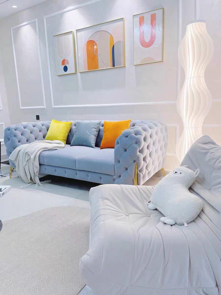 Sofá italiano minimalista de estilo americano, sencillo, ligero, de lujo, con capa frontal de piel de vaca, para hotel, villa, salón, club, recepción.