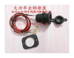 Base madre para encendedor de cigarrillos de cobre puro con placa de montaje, base madre para cargador de coche modificado de alta potencia con fusible, cable calibre 18