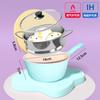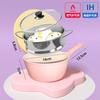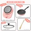 Small bamboo spatula, Pink frying pan (diameter 12cm), Pink milk pot (diameter 12cm), Blue frying pan (diamete...