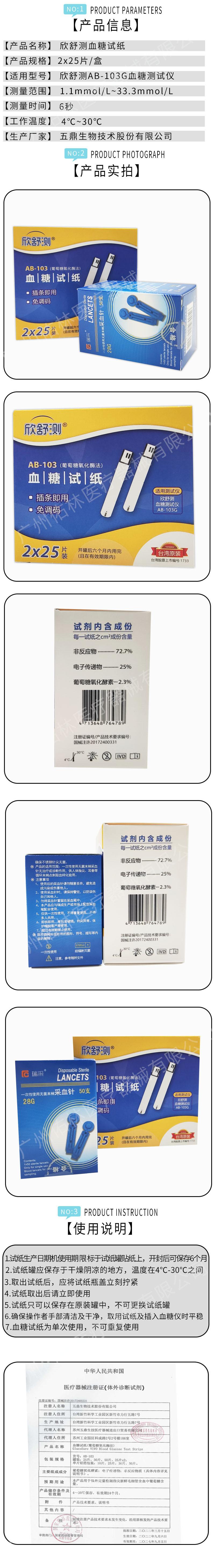 Tiras reactivas de glucosa en sangre Xinshu AB-103 (50 unidades) para el hogar. Tiras reactivas de glucosa en sangre sin código.