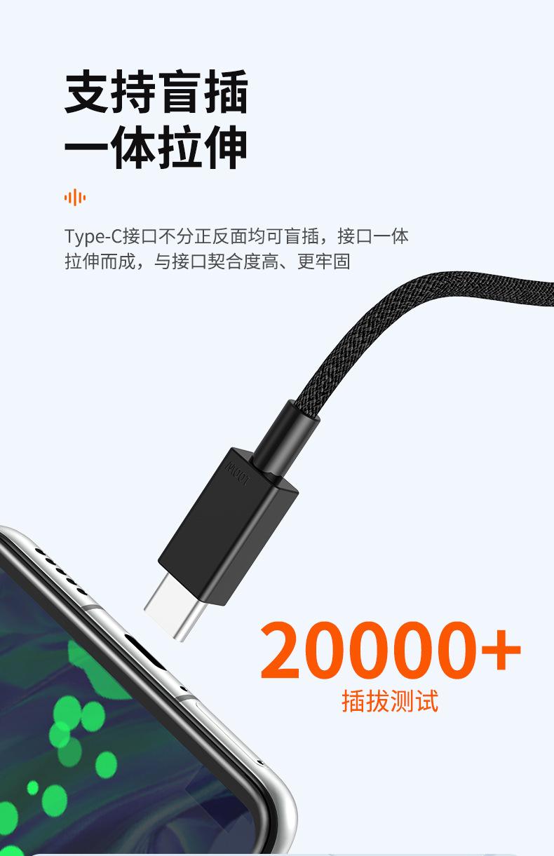 6. La interfaz TIPO-C se puede conectar a ciegas independientemente de los lados frontal y posterior. La interfaz está estirada en una sola pieza, lo que tiene un alto ajuste con la interfaz y es más segura. Prueba de conexión Type-c 20000+