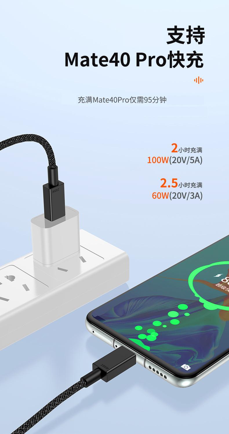 Carga completa del Mate40 Pro en 95 minutos. Admite FCP, AFC, QC4.0, 3.0 y otras tecnologías de carga rápida.