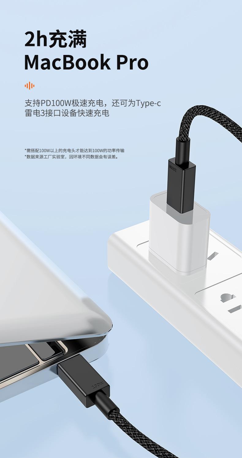 2. Carga completa del MacBook Pro PD100 en 2 horas, admite carga rápida de dispositivos con interfaz Type-c/Radium 3 (los datos anteriores provienen del laboratorio de fábrica)