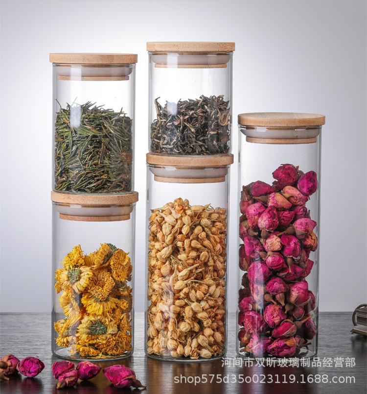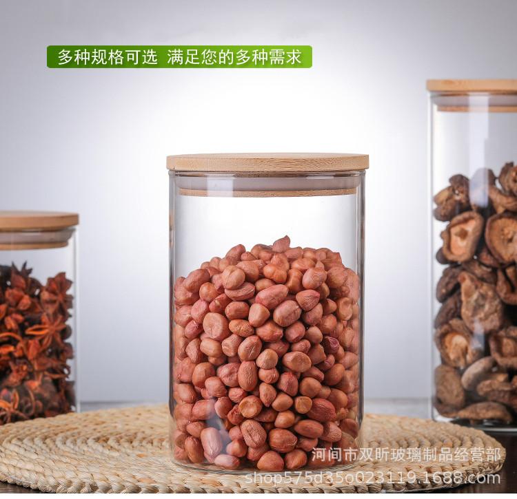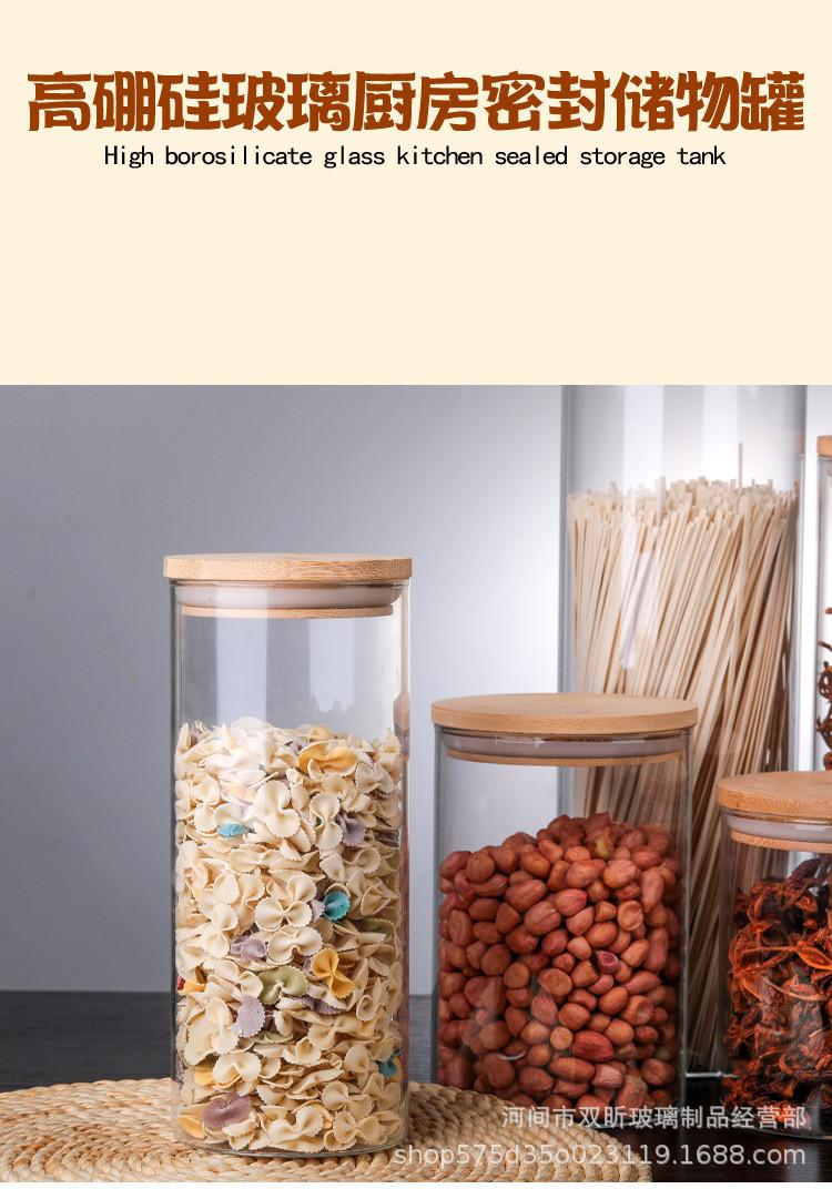 Frasco de vidrio transparente sellado para cocina, sala de estar, vidrio de borosilicato, tapa de bambú, frasco para almacenar dulces y refrigerios