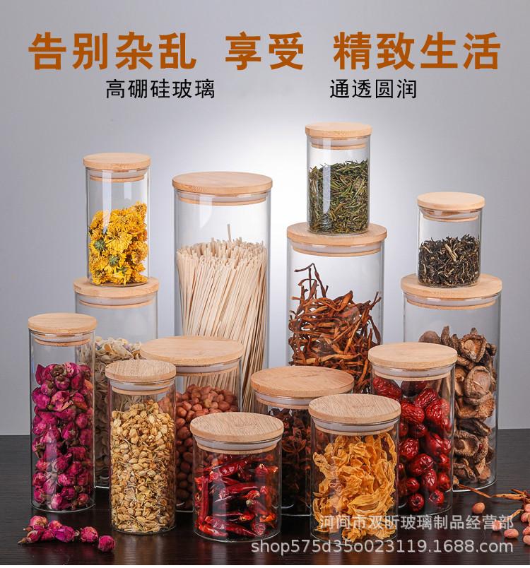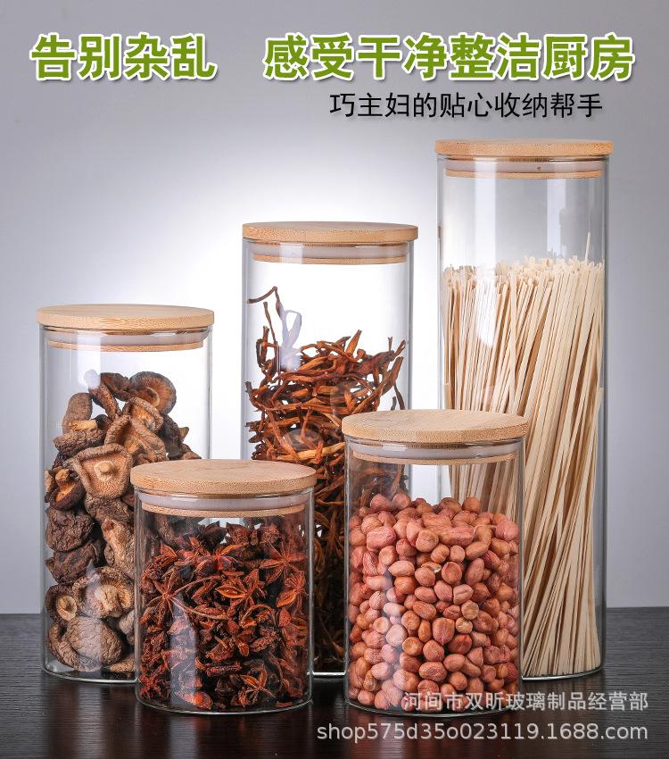 Compra Frasco de vidrio transparente sellado para cocina, sala de estar, vidrio de borosilicato, tapa de bambú, frasco para almacenar dulces y refrigerios al por mayor en Joom.pro