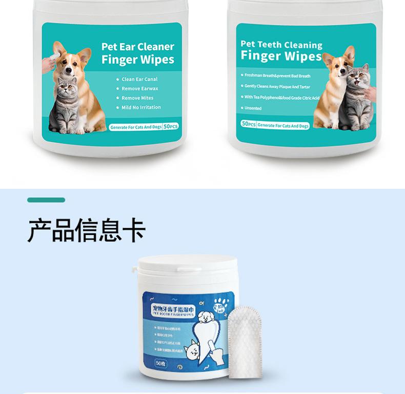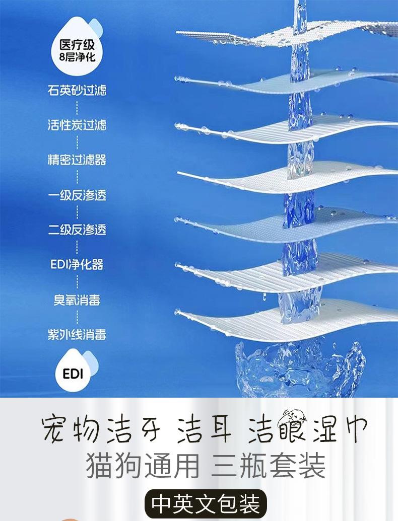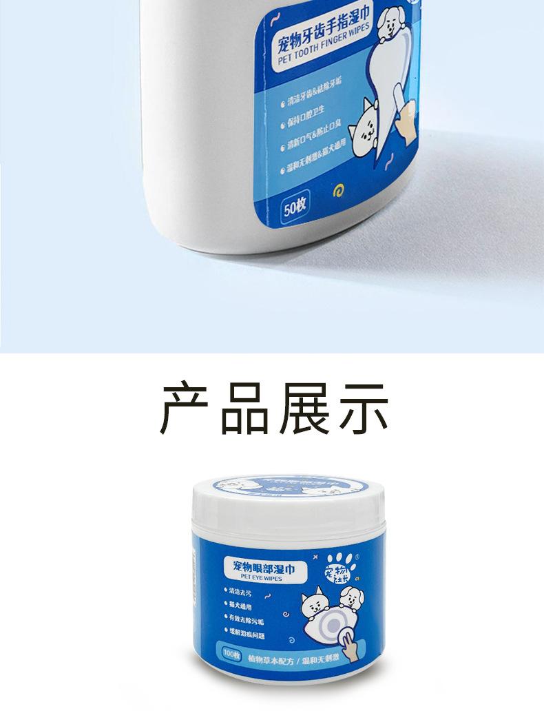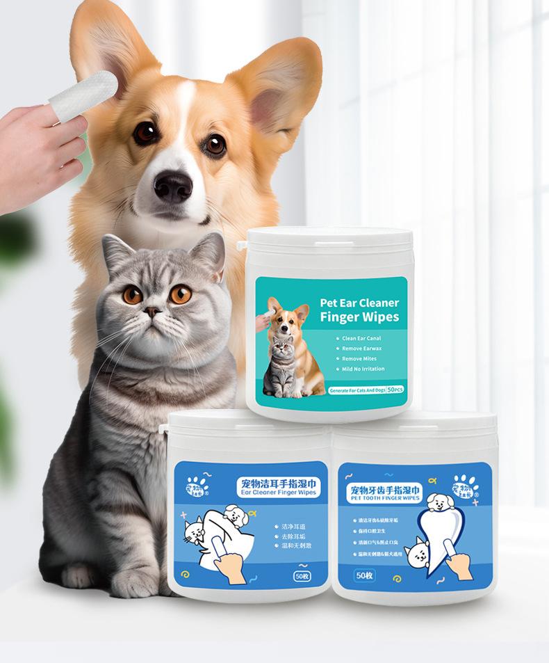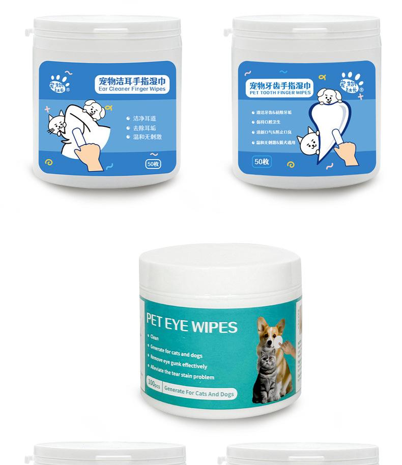Xu Mo Limpieza de Mascotas Cuidado de Oídos, Dientes y Ojos Toallitas Húmedas Tejidos Desodorizantes Set de Tres Piezas Suministros para Aseo de Gatos y Perros