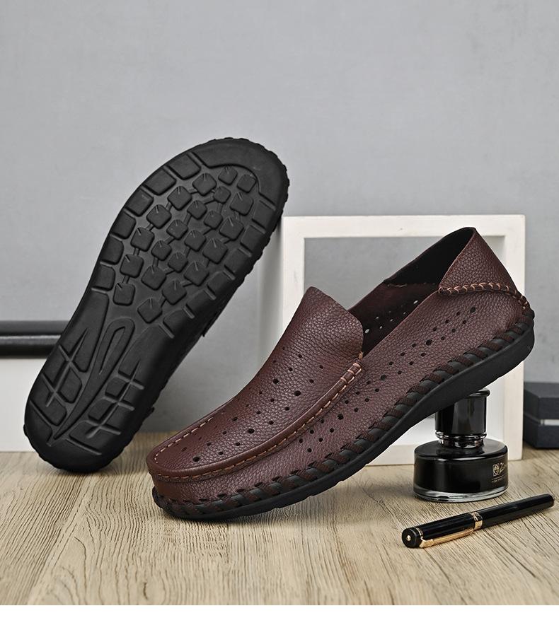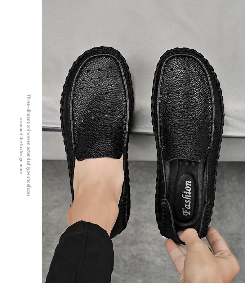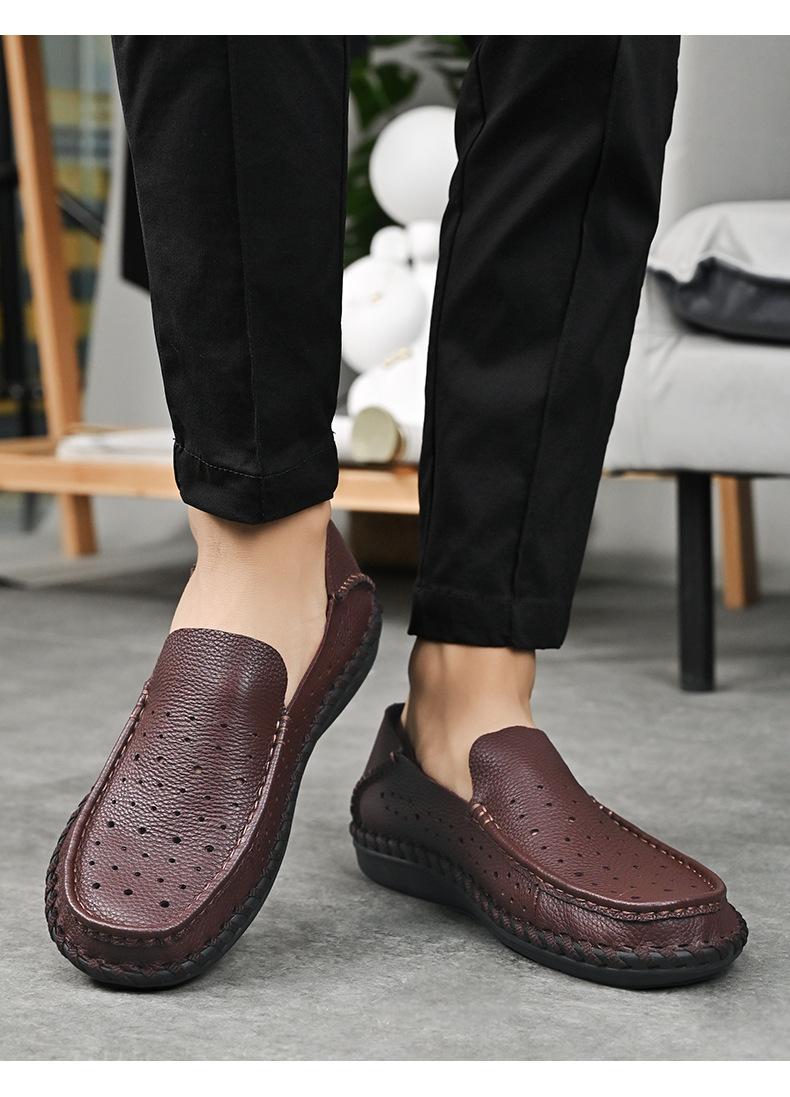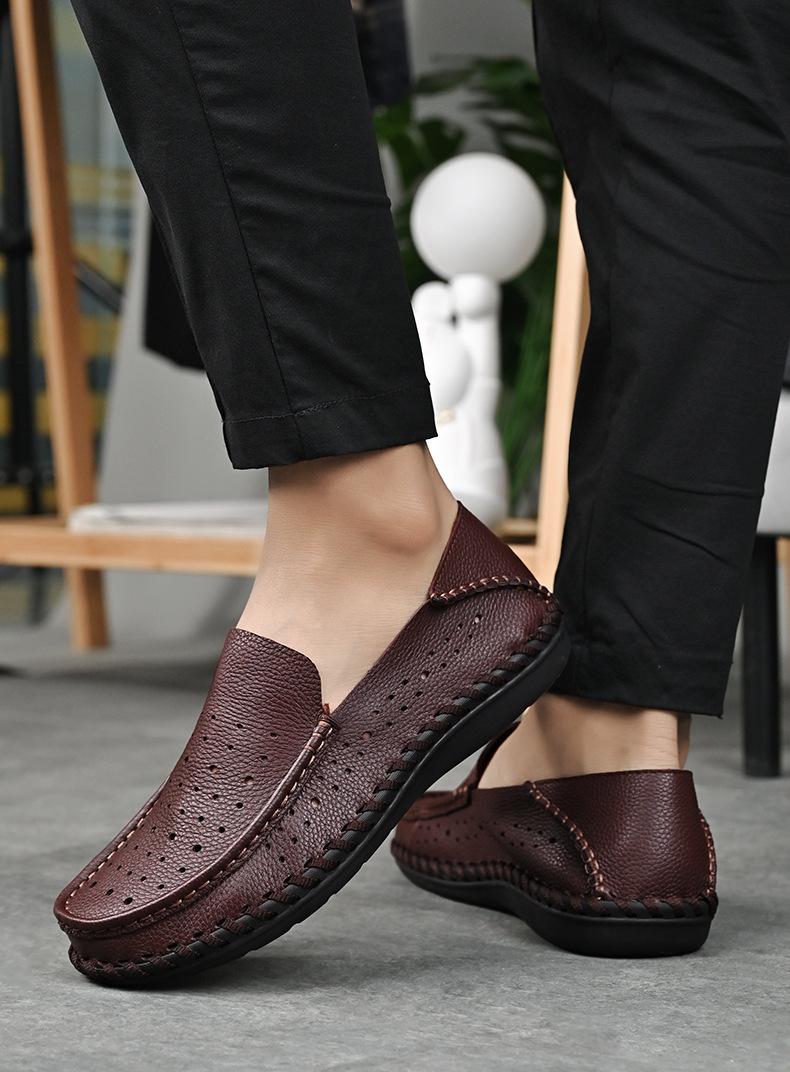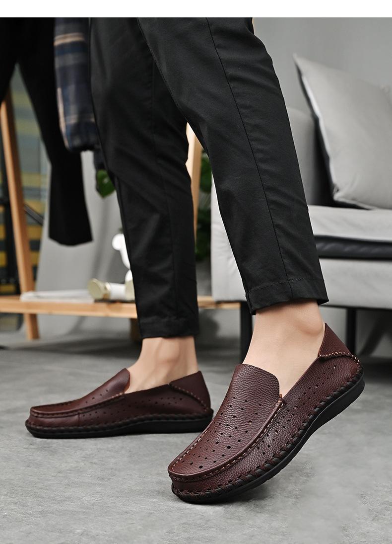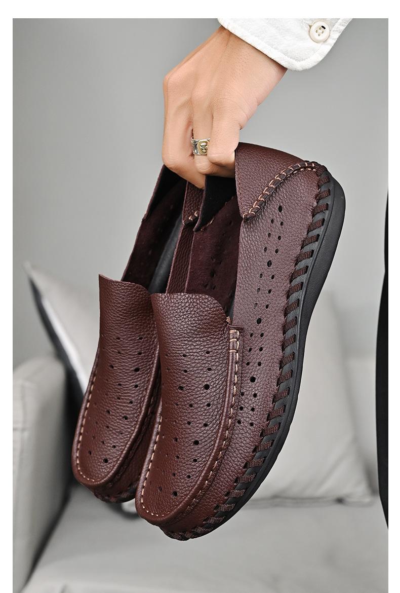 Comercio Exterior talla grande Zapatos de Cuero para Hombre Slip-on Casual Cuero Genuino Zapatos con Agujeros Verano Transpirables Zapatos para Hombre Suela Cosida a Mano Zapatos para Coche