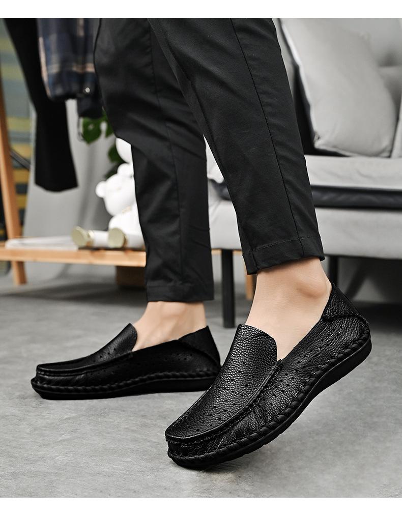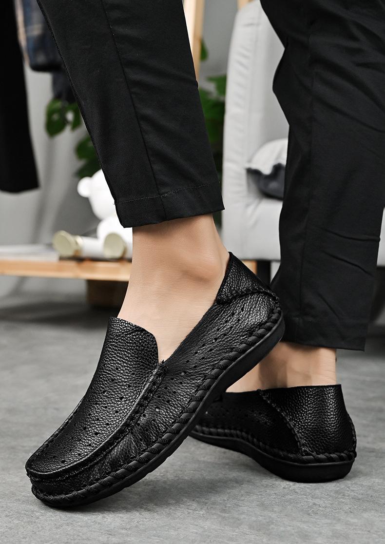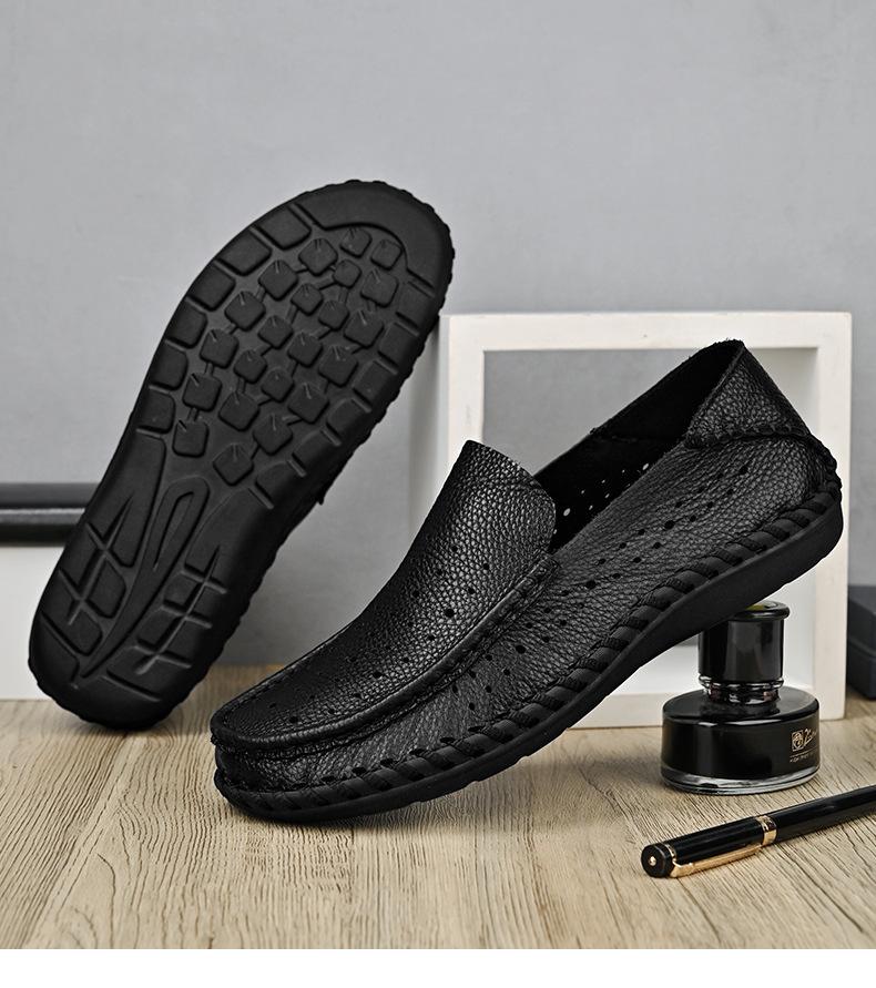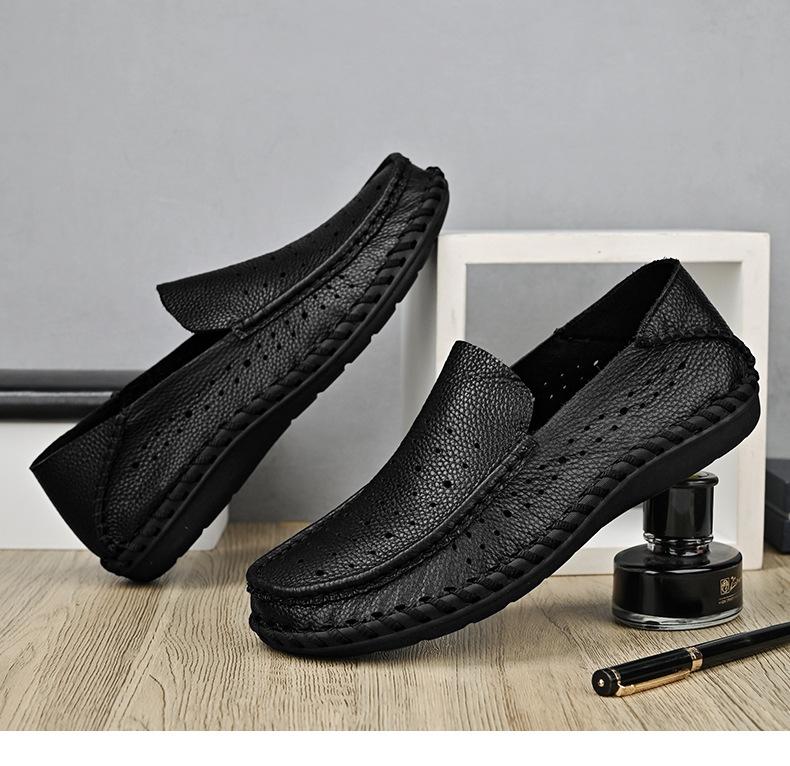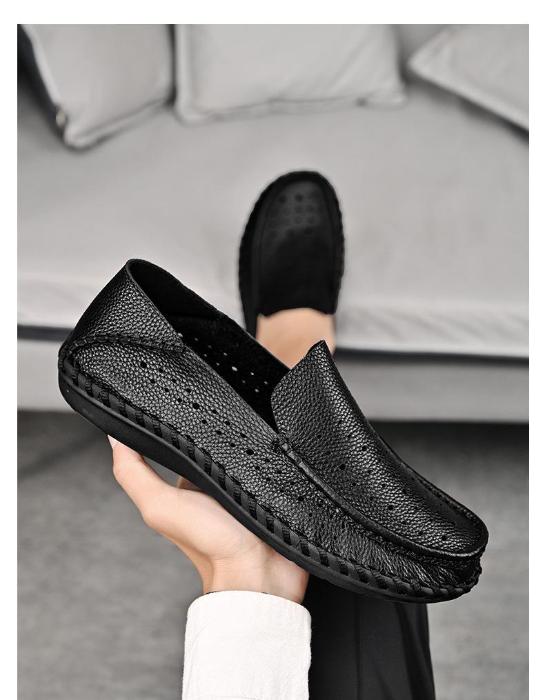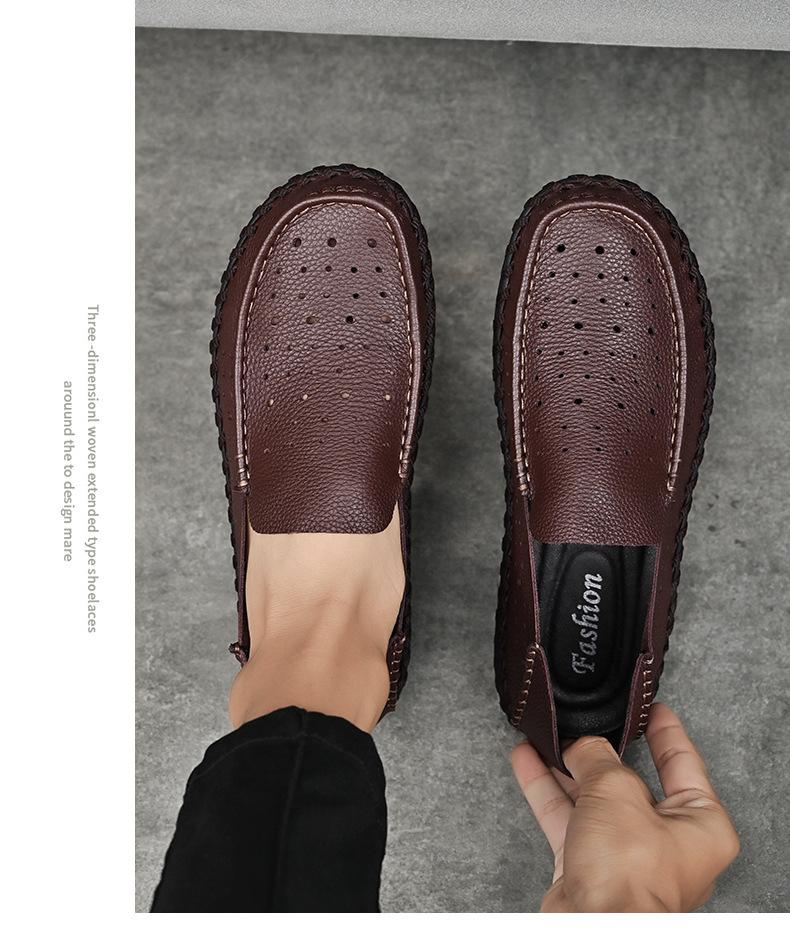 Comercio Exterior talla grande Zapatos de Cuero para Hombre Slip-on Casual Cuero Genuino Zapatos con Agujeros Verano Transpirables Zapatos para Hombre Suela Cosida a Mano Zapatos para Coche