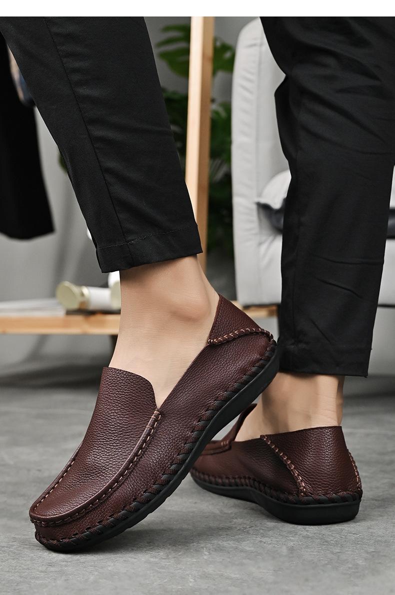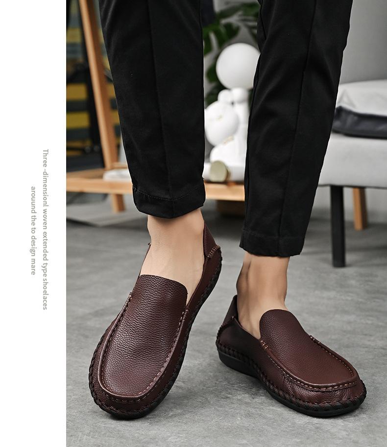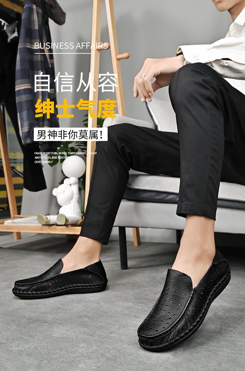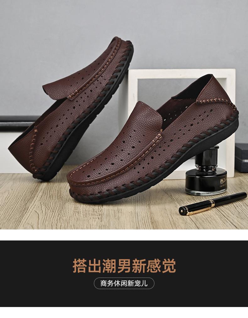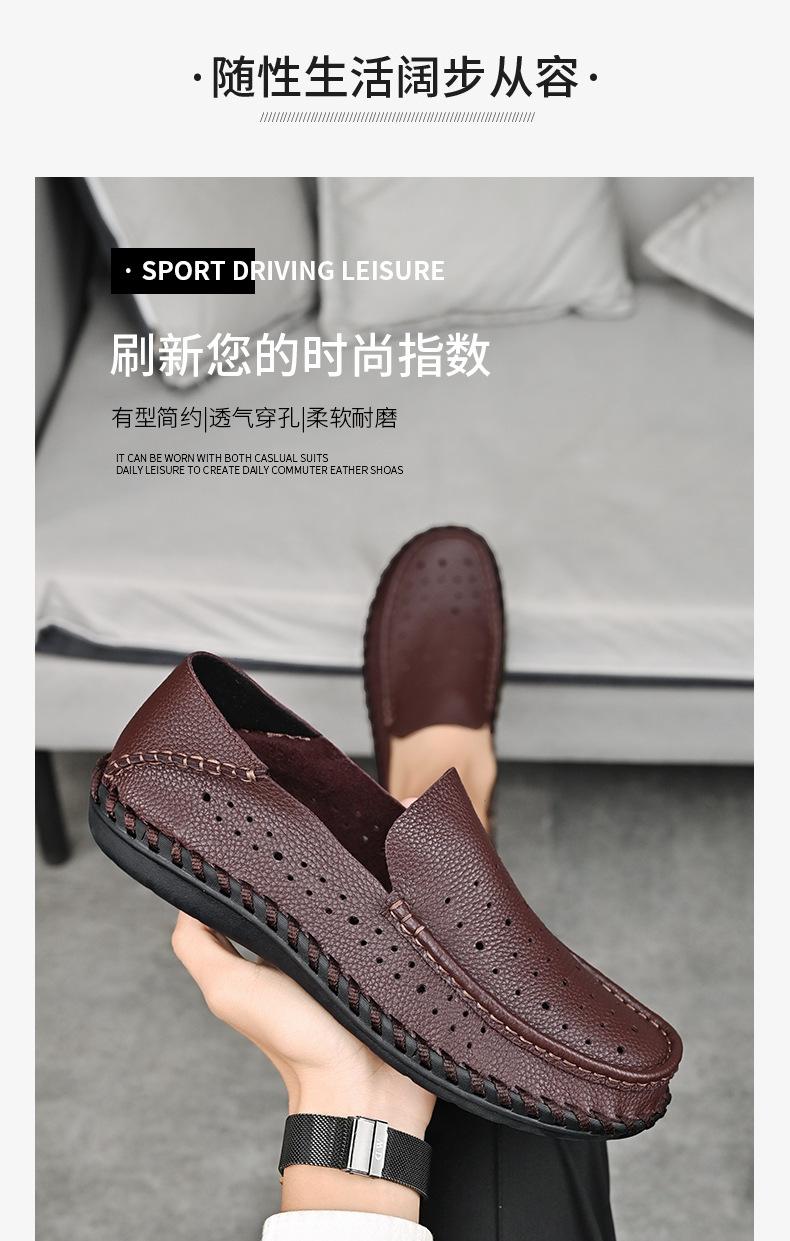Comercio Exterior talla grande Zapatos de Cuero para Hombre Slip-on Casual Cuero Genuino Zapatos con Agujeros Verano Transpirables Zapatos para Hombre Suela Cosida a Mano Zapatos para Coche
