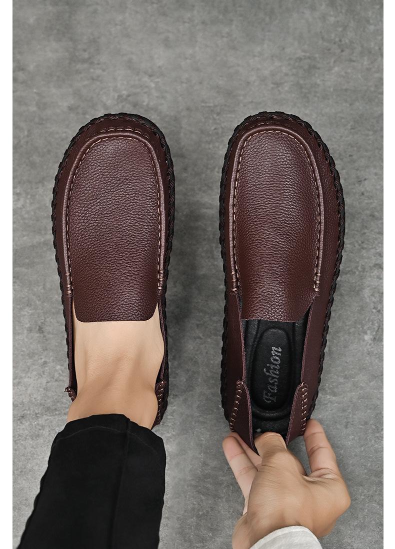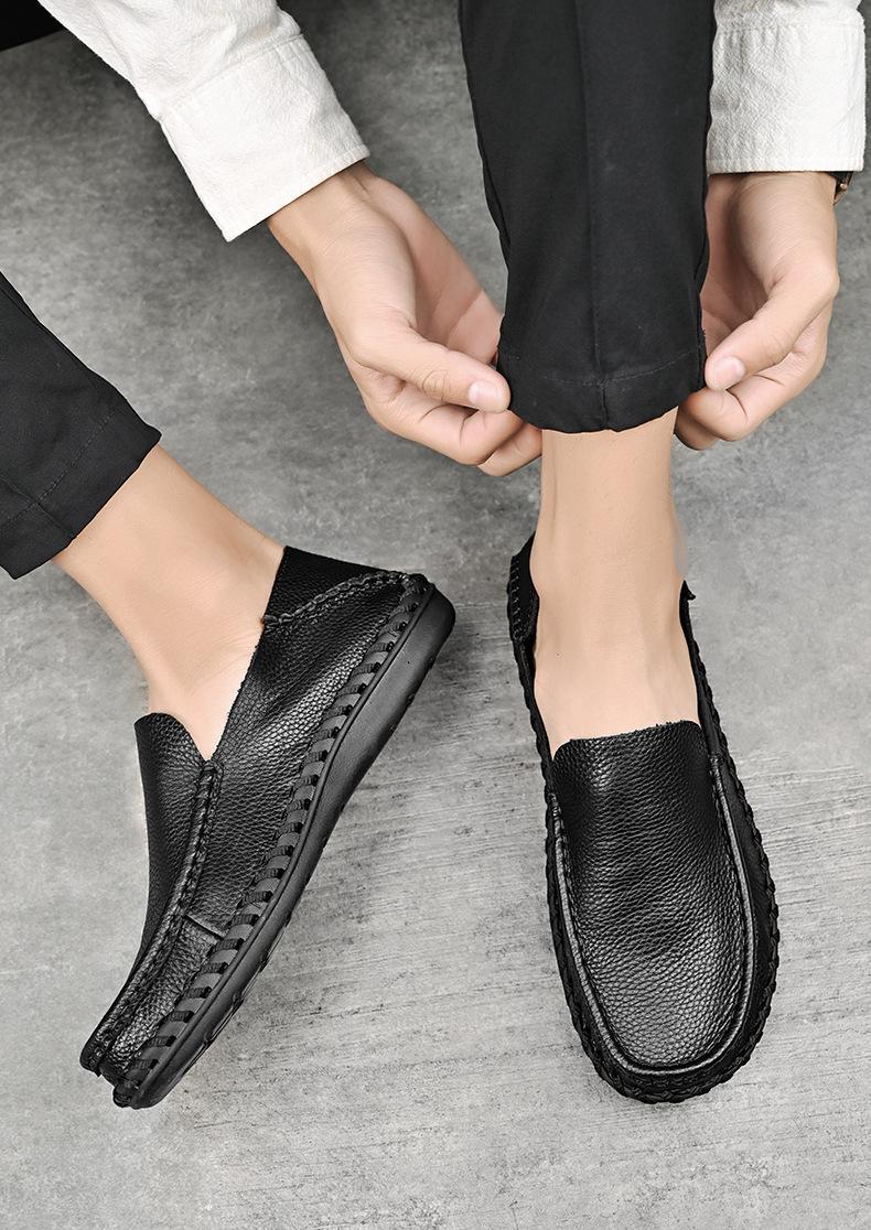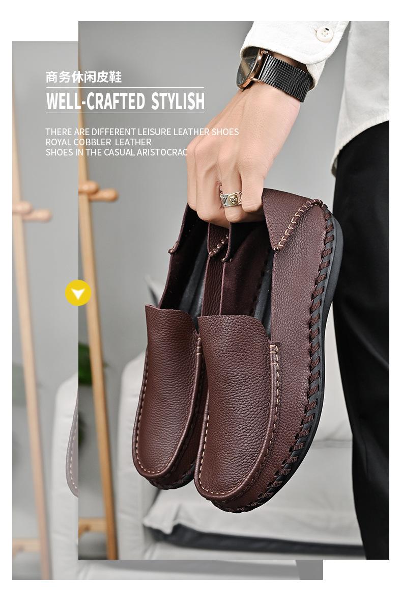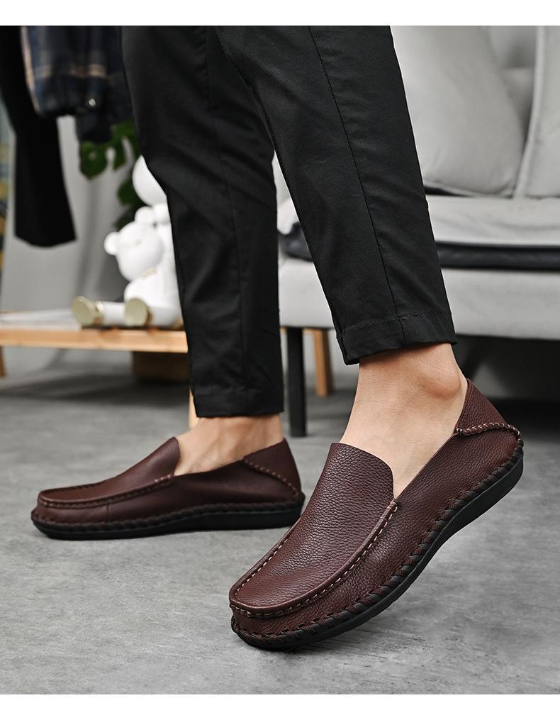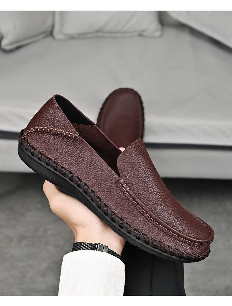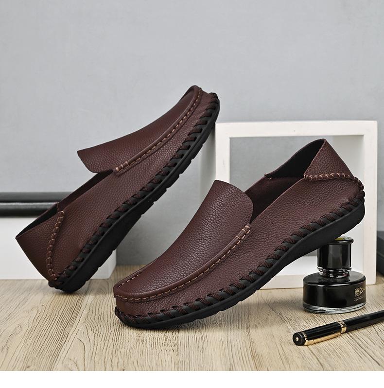 Comercio Exterior talla grande Zapatos de Cuero para Hombre Slip-on Casual Cuero Genuino Zapatos con Agujeros Verano Transpirables Zapatos para Hombre Suela Cosida a Mano Zapatos para Coche