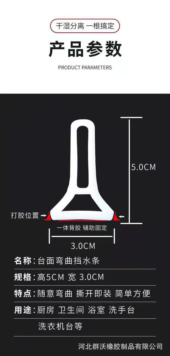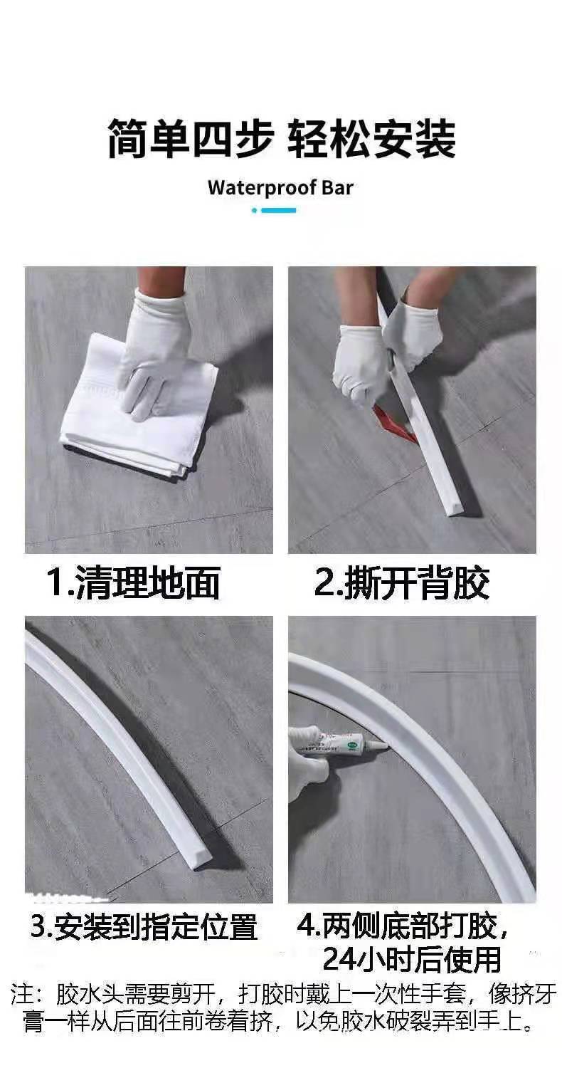 Tira para bloquear el agua del baño autoadhesiva separación seco y húmedo tira de sellado de goma blanda para bloquear el agua del inodoro tira de sellado para bloquear el agua del piso